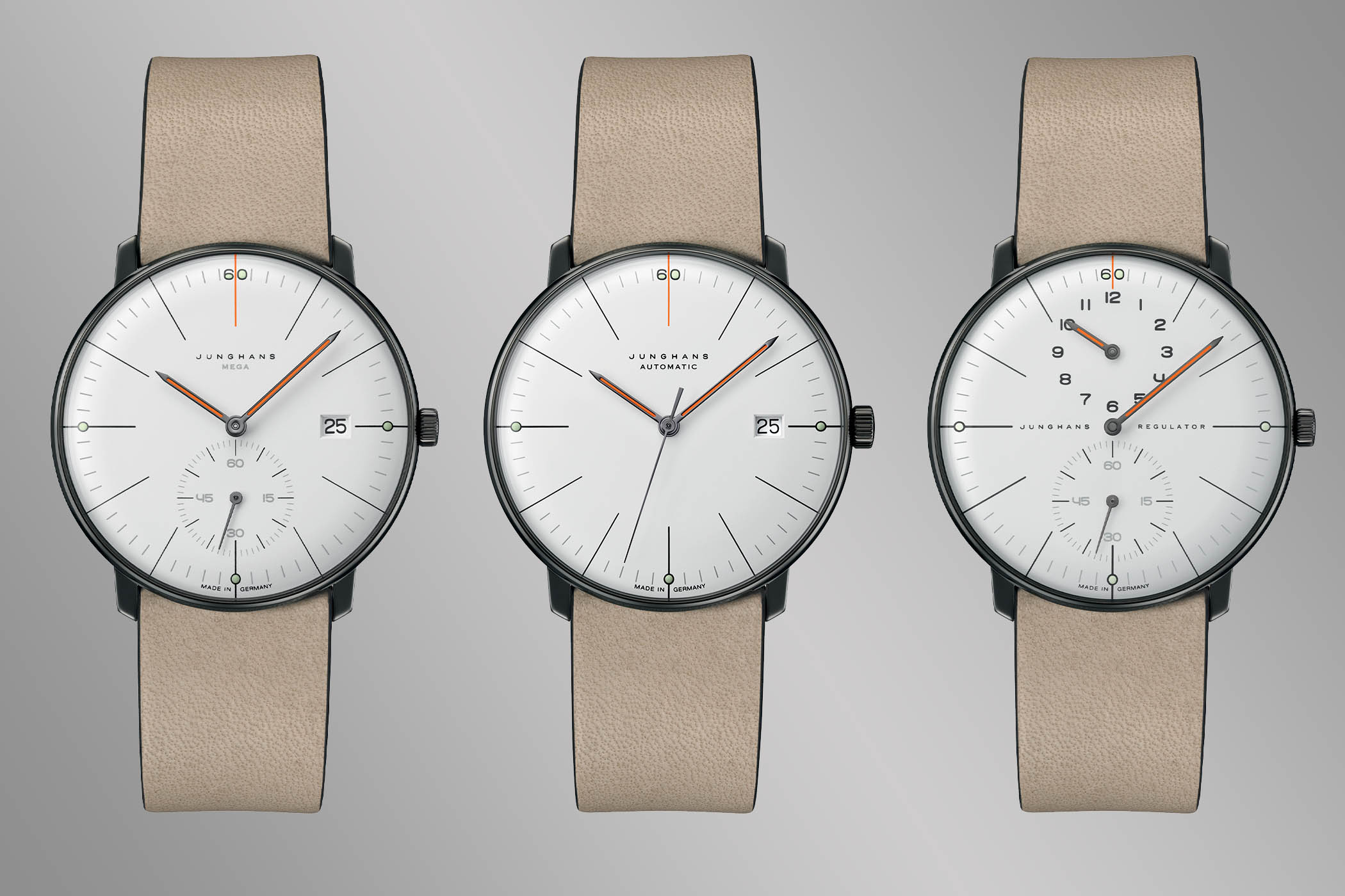 A set of three watches celebrating “60 years of Max Bill on the wrist” for collectors.