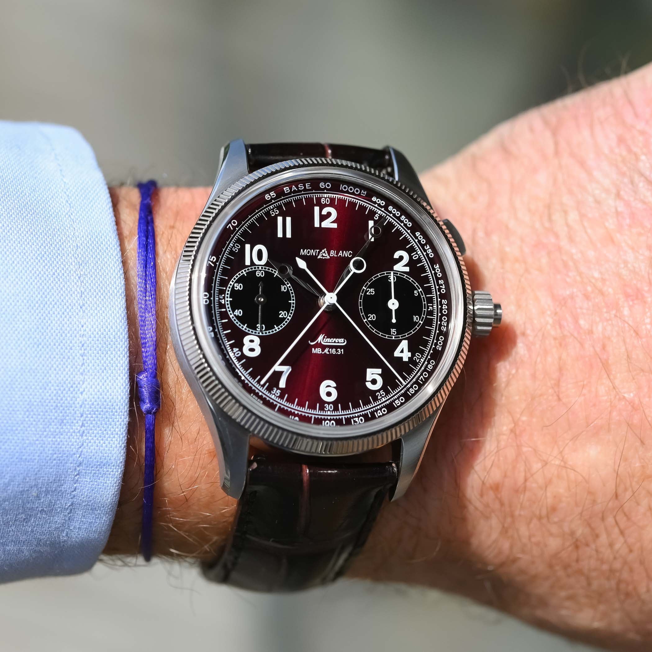 The Montblanc 1858 Split-Seconds Chronograph is a true beauty, with its deep burgundy dial, crisp white markings, fluted gold bezel and so on. And it only gets better on the inside, as Montblanc’s in-house Calibre MB M16.31 is a true marvel of construction. A total of 287 individual components make up a mechanical micro city, capable of splitting seconds at the push of a button. Inspired by Minerva’s pocket watch calibre 19-09 CH from 1909, the generously sized movement fills the entire case. Everything is produced and hand-decorated to Haute Horlogerie standards in the old Minerva manufacture in Villeret. It is limited to 100 pieces and retails for EUR 55,000.