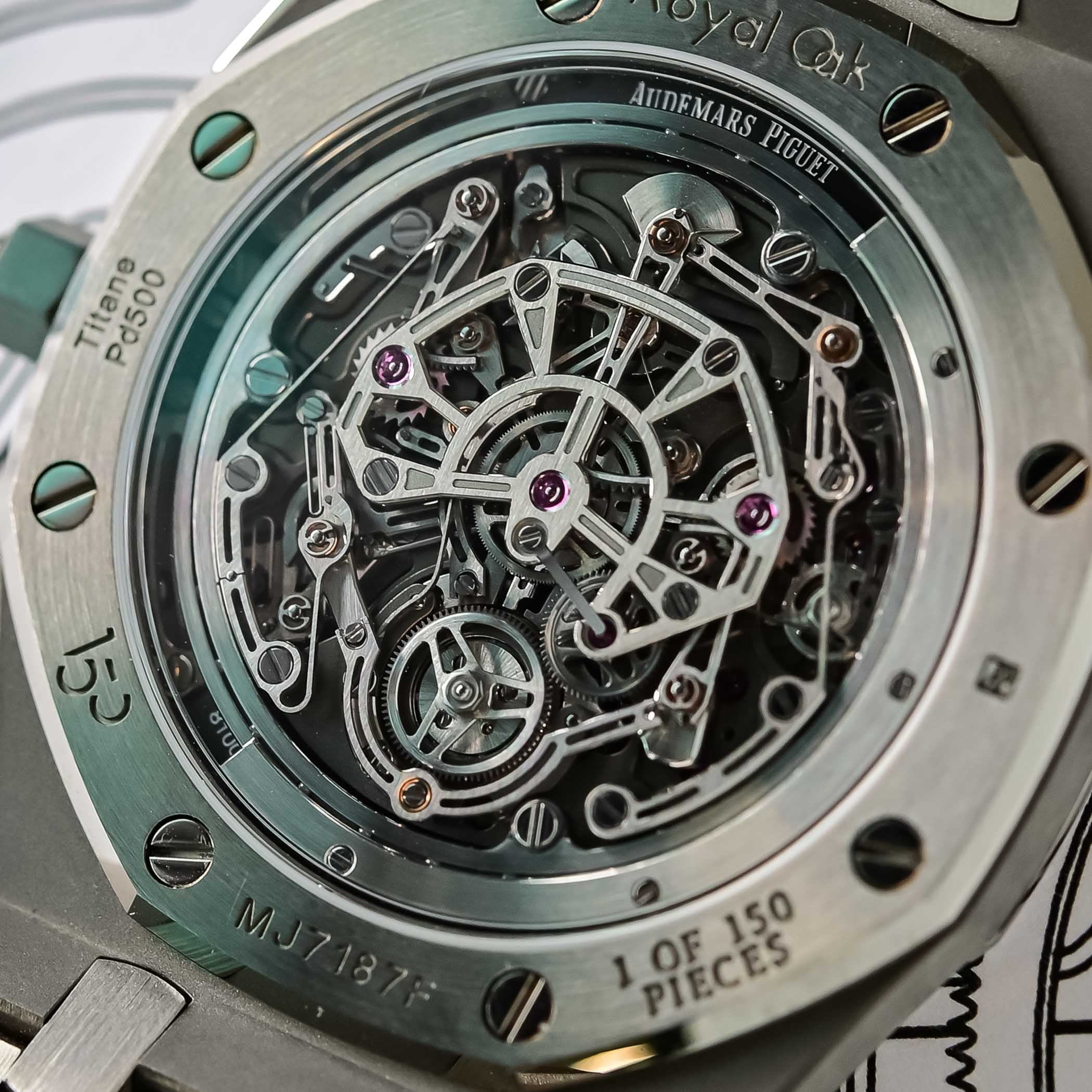 On the more technical innovation side of things, the Audemars Piguet Royal Oak Jumbo Chronograph RD#5 is one of this year’s true highlights. Not only does it present a radical rethink of the chronograph mechanism, with a retrograde-based system with a heart-shaped cam to release and reset the chronograph indications, but it also wowed us with its complex and modern movement design. It is surprisingly thin, at only 4mm in height and set into an 8.1mm case. Regulated by a dial-side one-minute flying tourbillon, it’s the backside that gets us lost in thoughts and admiration, with its many bridges, cams, levers and wheels. Audemars Piguet will make only 150 of them, but the tech will surely turn up in other watches. The price is set at CHF 260,000.