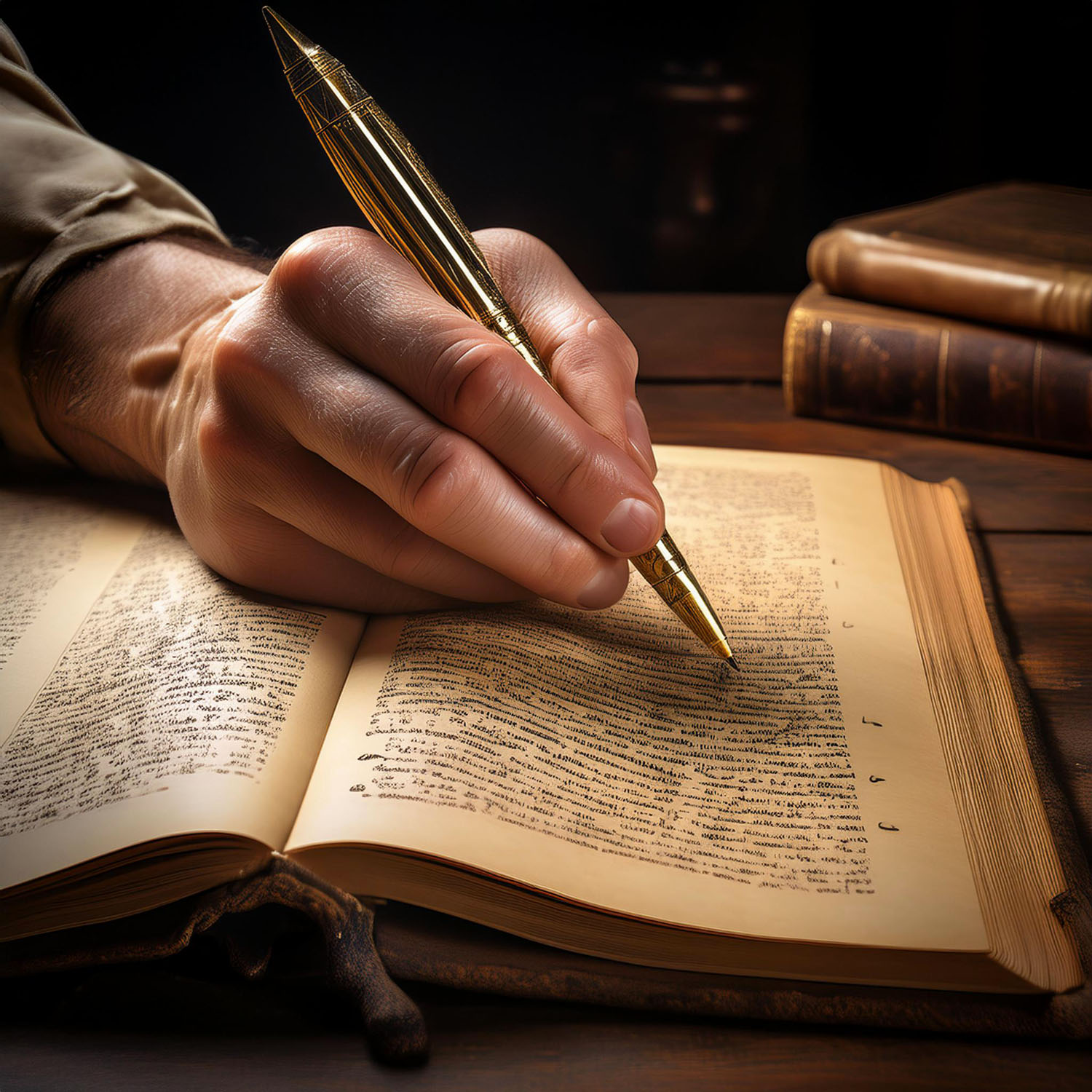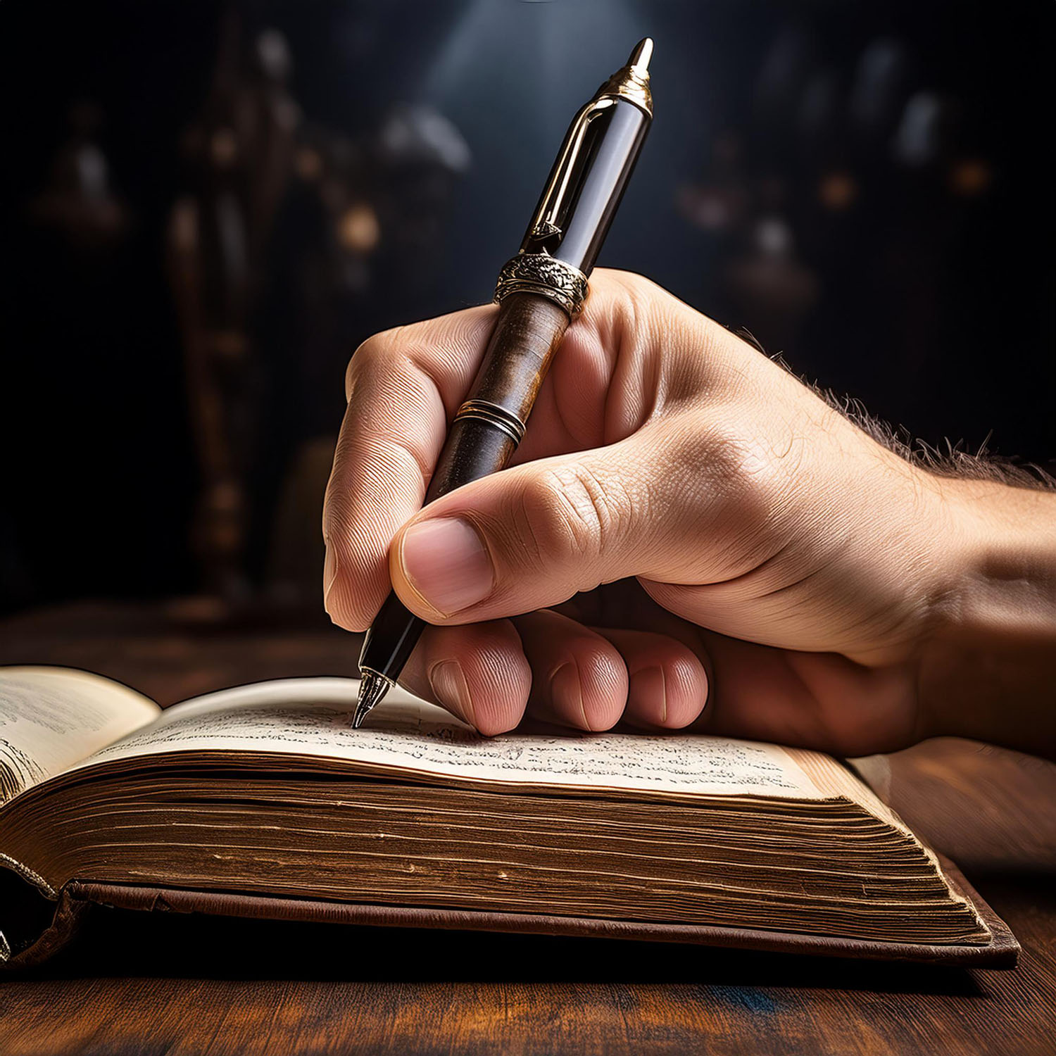 The 10:10 hand position is one of many examples that Professor Block mentions in this video. He also talks about the prevalence of right-handed writing over left-handed writing. He explains that if you “ask ChatGPT to draw a picture of somebody writing with her left hand”, you’ll always end up with a right hand. Even by using various tricks, he could hardly overcome the issue, only by using complex chains of requests. As an example, I’ve also asked Photoshop’s AI tool to generate “a left hand writing in a book”, and here are three of the results I obtained (and many more in the same vein), all with a right hand.