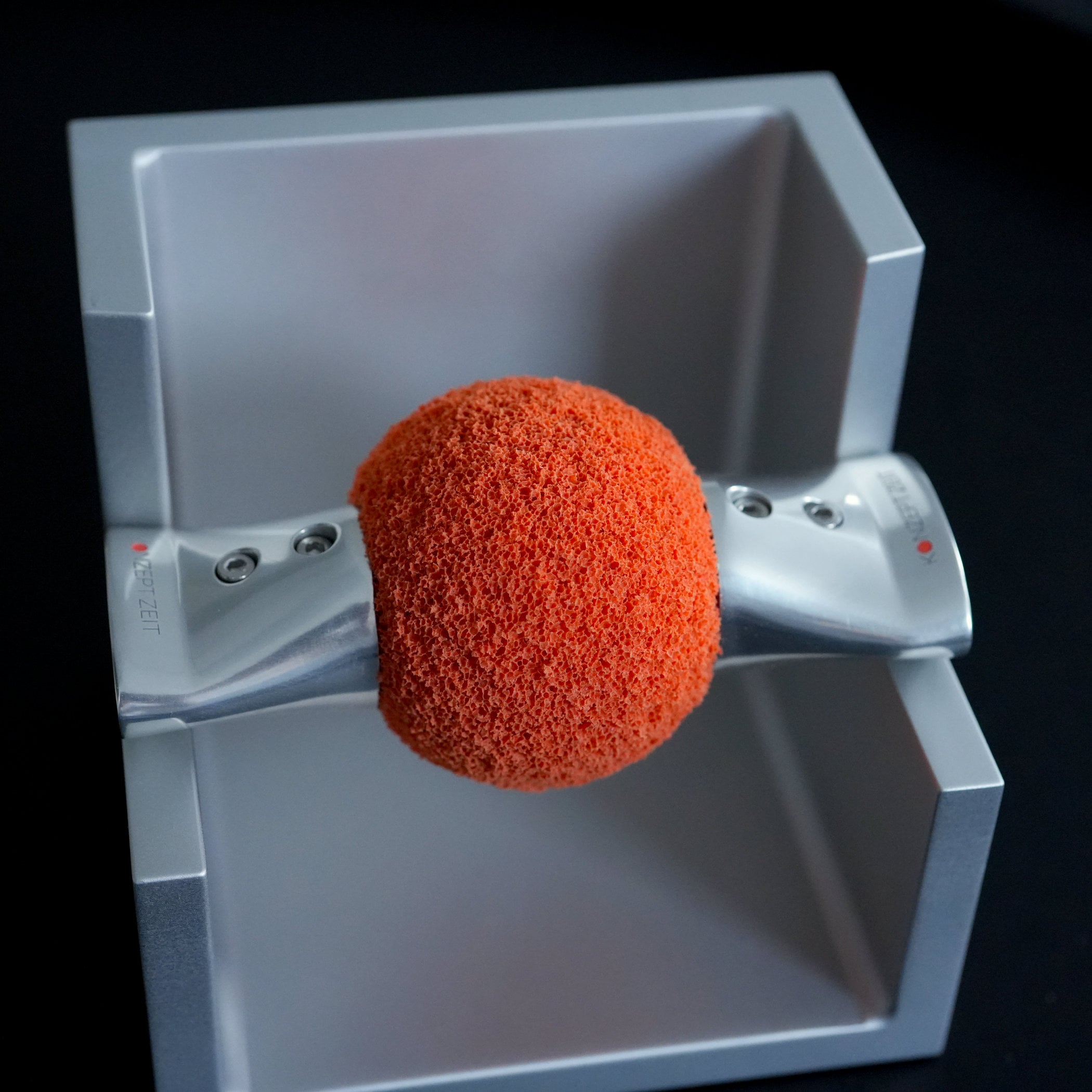 Made with a close friend and long-term partner in Asia, the base is CNC machined from a solid block of aluminium, with final refinements and assembly done in Berlin to ensure the best possible fit and finish. The two polished aluminium arm pieces meet in the middle, with a compressible bright-orange vulcanised rubber sphere. Designed to adapt to the size of your watch, the sphere can accommodate anything from an A. Lange & Söhne 1815 34mm, to an IWC Big Pilot Perpetual Calendar. The square base measures 11cm by 11cm and stands 12cm tall, with a total weight of approximately 2 kg. So it’s fair to say this is a sturdy one!