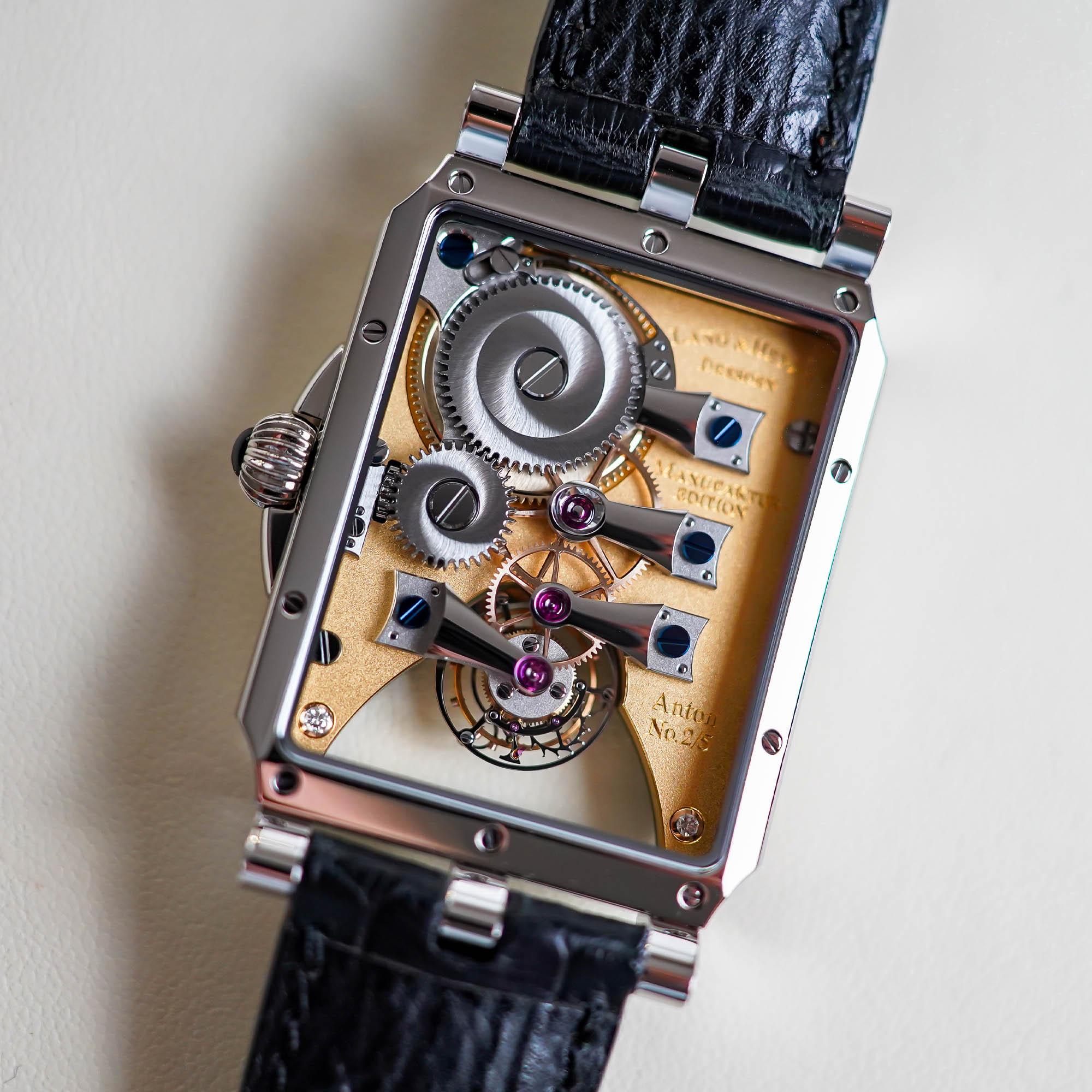 I absolutely agree that the Georg presents is movement in a stunning and elegant way. Superb design. The Anton is gorgeous, but the resulting negative space on the back feels a bit arbitrary and loose. The Manufacture Edition seems to be a great compromise, except I’d have to be looking at my ugly arm hairs and freckles in the fully transparent window.