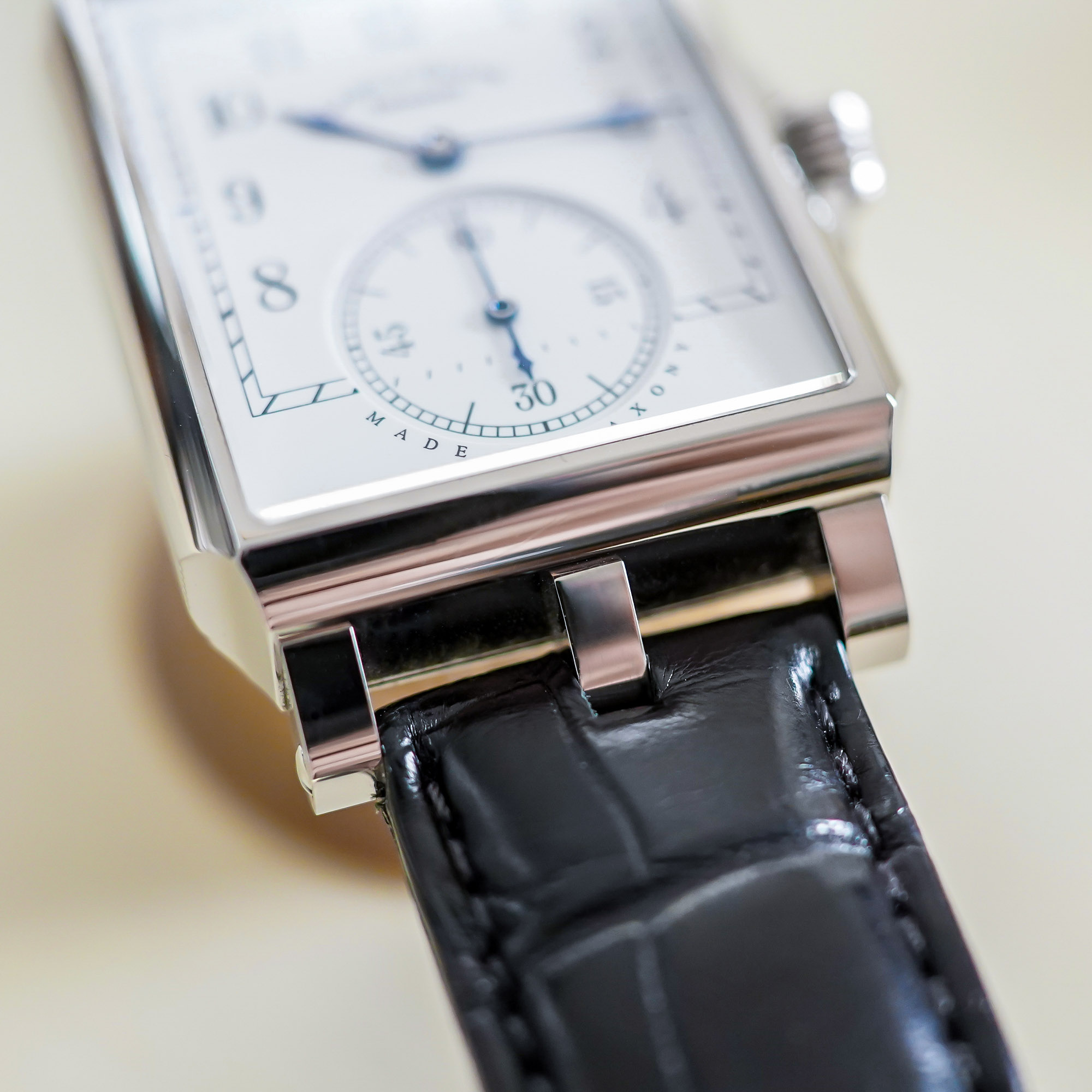 Have you ever found yourself torn between two rather similar-looking watches and not knowing which one to go for? I’m pretty sure we’ve all experienced this at some point, maybe even two watches from the same brand. The choice of a blue or green dial, or any other colour for that matter, can already be a tough one to make. I had that very experience recently when I was at Lang & Heyne and handled the Georg and Anton, two rectangular masterpieces with very similar looks but very different mechanics.