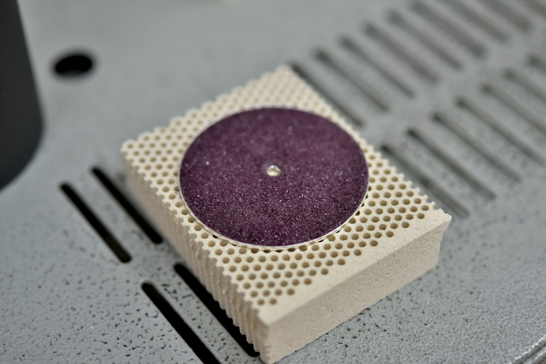 Once the powder is prepared, the dial artist can begin applying it to the blank. This is done by carefully transferring it onto the dial with a brush in an even layer for transparent enamel, but it can also be done using a sieve for opaque dials. After the first layer is done, it’s fired in a kiln that can be anywhere between 800 and 1200 degrees centigrade. The precise temperature, and length of firing the actual dial, varies per colour. After a dial is fired, it needs some time to cool down before the next layer can be applied. Slight imperfections or particles trapped inside the previous layer can be carefully ground out between the first three to four layers. However, this is no longer possible for subsequent layers, as the ground-out spots would show up in the final dial.