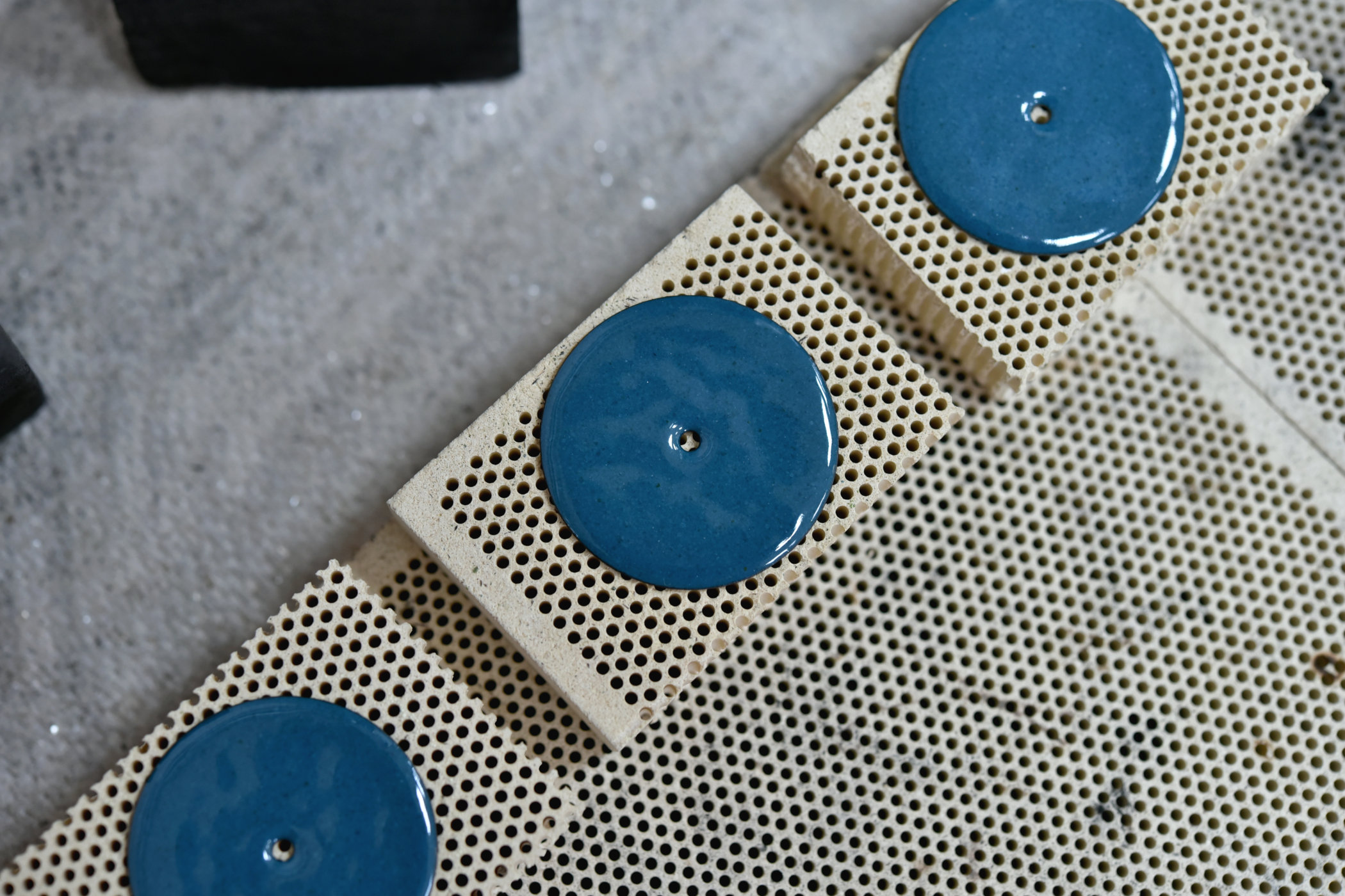 Every type of enamel starts as soft glass powder derived from silica mixed with various other compounds. This is melted down in a crucible until it’s a transparent crystal-like liquid. Various other substances can be added to create unique and uniform colours. Cobalt creates blue tones; iodine is used for shades of red, and so on. Making a batch of enamel takes an average of 14 hours in a kiln to properly bond together before it’s taken out to cool. The next step is to break down the solid piece of enamel into smaller chunks before grinding it into a powder again.