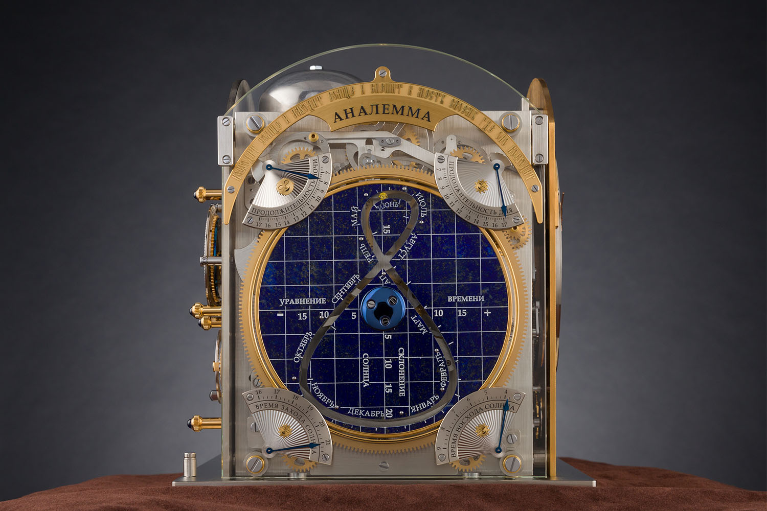 The other side meanwhile depicts the analemma and the current position of the Sun on its trajectory at any given point in time (here’s a Wiki link for those who want to know what the heck that actually means). There are also four small dials with hands – one in each corner – which indicate the length of day, the length of night, the time of sunrise and the time of sunset in Moscow. As a final touch the Moscow Comptus Easter Clock also features a special hidden complication which emits a sound when the clock needs to be wound. That last one is critical in my opinion, imagine having to reset all those indications because the clock ran out of juice!