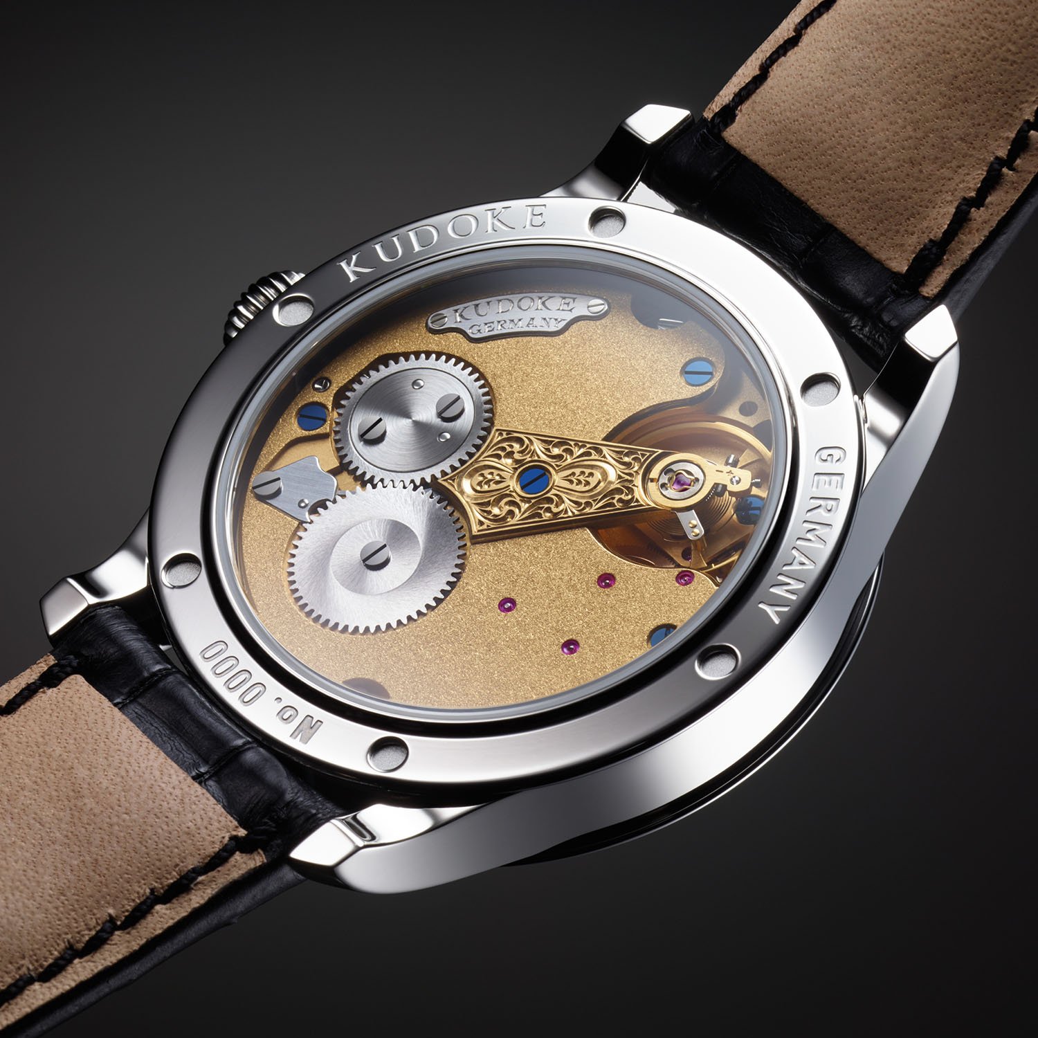 The in-house Kaliber 1, developed with Habring² and built in Kudoke’s workshop, is unchanged. The hand-wound movement runs at 28,800 vibrations/hour with a 46-hour power reserve and features a frosted wheel bridge, a hand-engraved balance cock with an infinity motif, hand-polished bevels and blued screws.