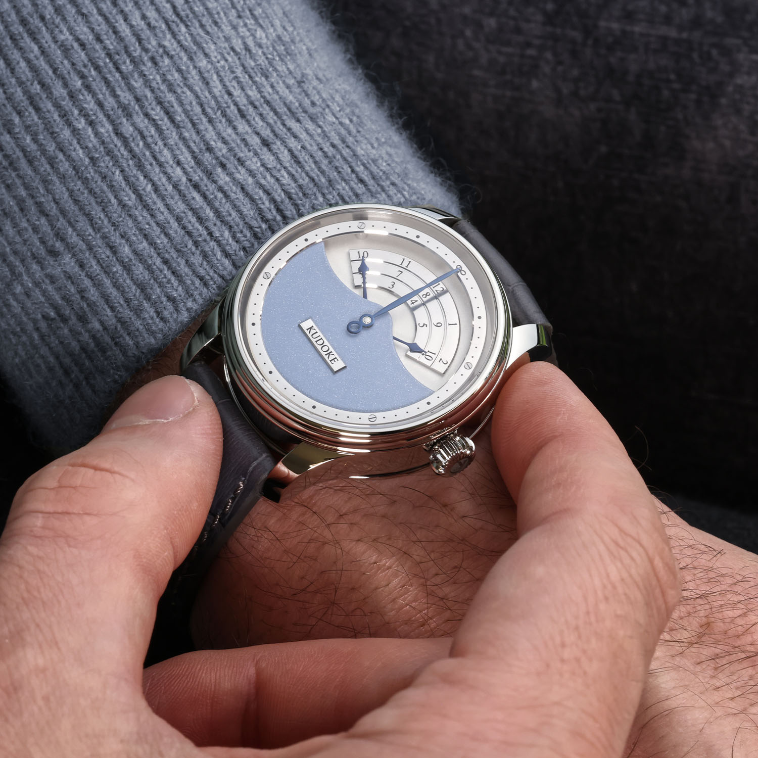 The Kudoke 3 Sky Blue is worn on a leather or Alcantara strap closed with a stainless steel pin buckle as standard; a folding clasp in steel and rose gold case/buckle options are available on request. It will be available directly from Kudoke and through the brand’s small network of partners, priced at EUR 11,500. Please visit www.kudoke.eu for more information.