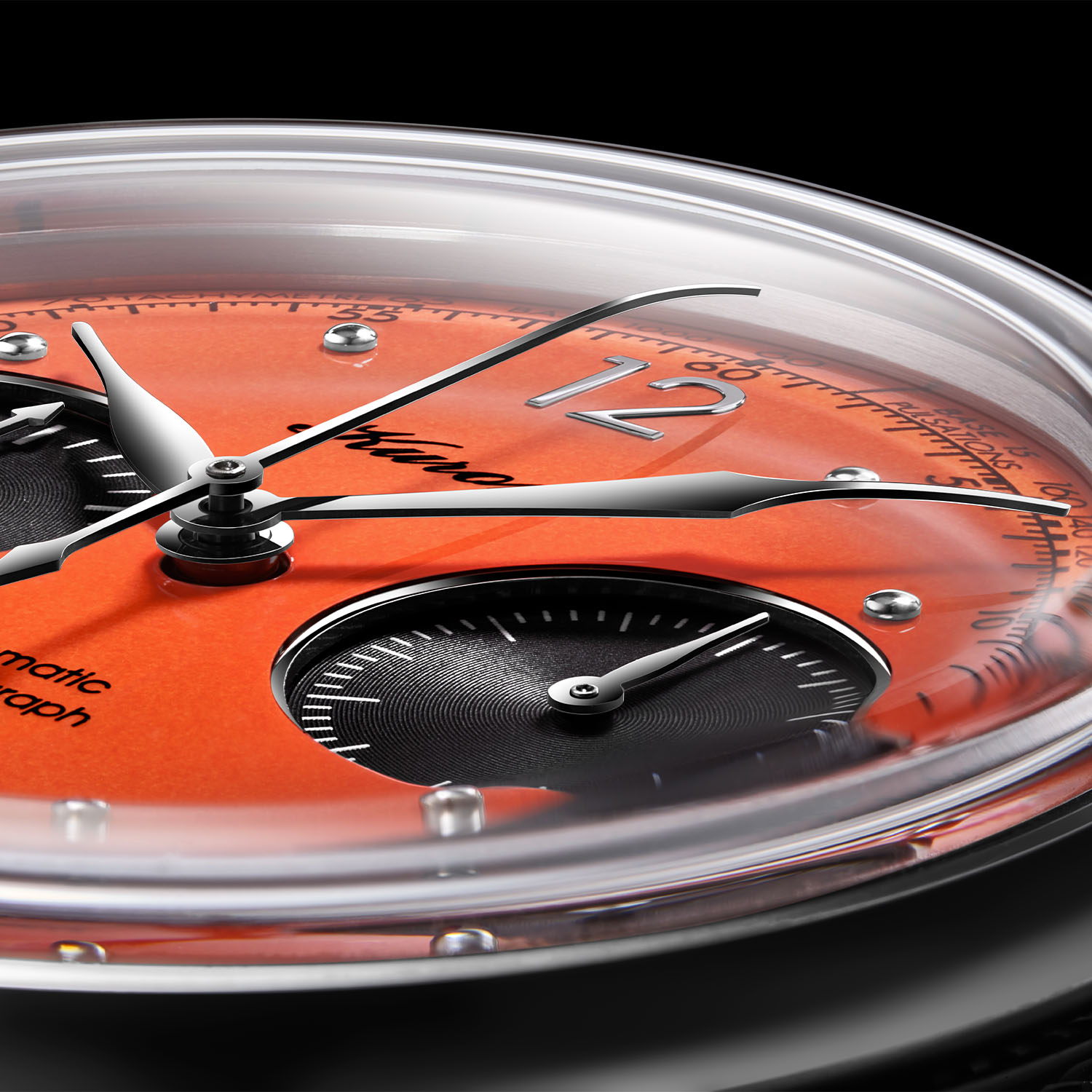With its latest creation, the Vermilion Chronograph, Kurono adds a bold model to its stopwatch lineup, which has already been made in multiple variants. Design-wise, the recipe is that of a vintage-inspired chronograph with compact proportions, made of polished steel with a box-shaped sapphire crystal on top. The watch is only 38mm in diameter with a relatively reasonable 13.5mm thickness. It sits short on the wrist too, just under 47mm in length. The caseback is closed, the pushers are traditional pump-style and water-resistance is limited to 30m. Not a chronograph for aquatic activities, but you’ve guessed that from the design.