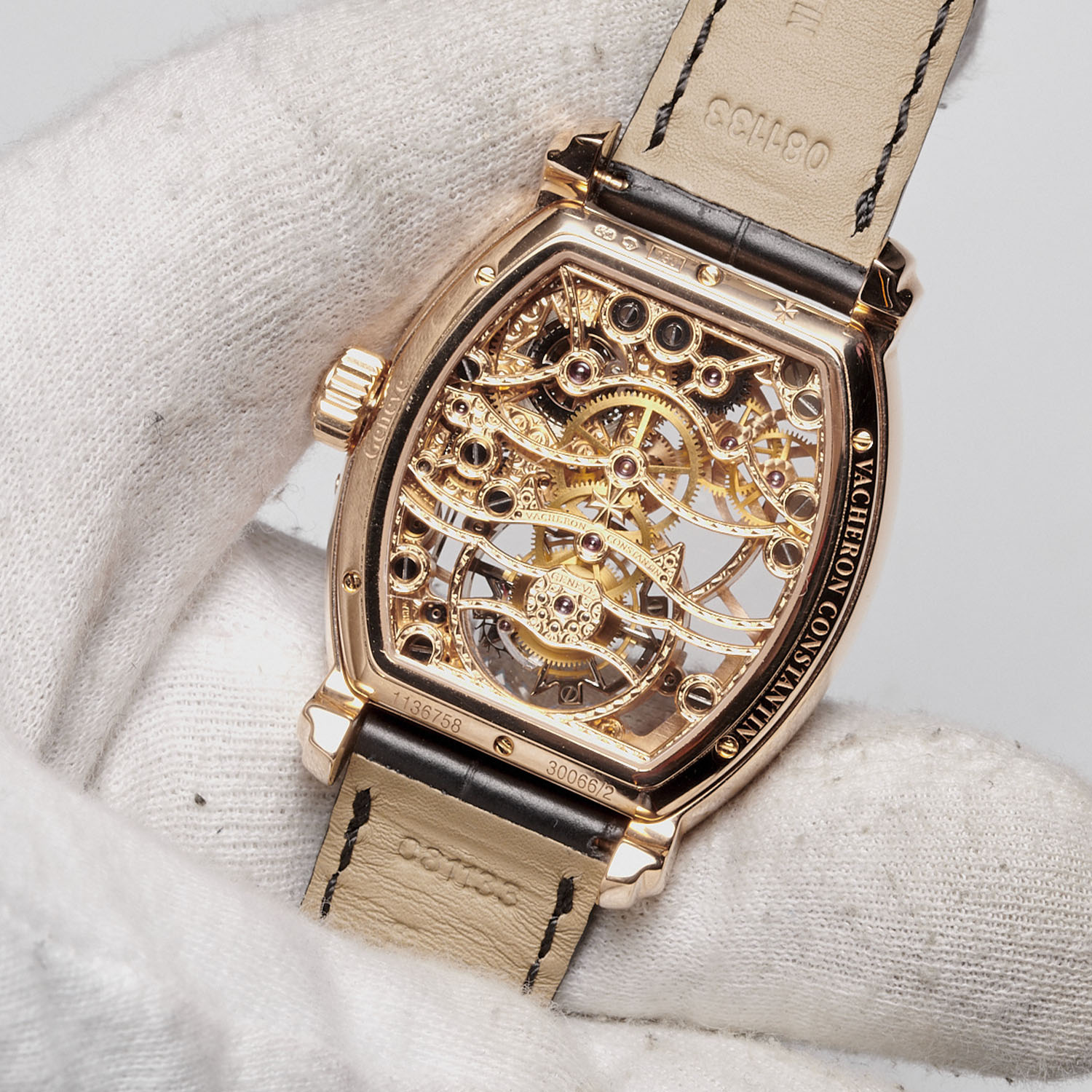 The Vacheron Constantin Malte collection made its debut in 2000 with a set of four watches sharing fan-shaped stepped lugs inspired by the brand’s Maltese Cross logo. The Malte Tourbillon Squelette stands out with its Tonneau-shaped case and its shaped openworked 2790SQ calibre. Shaped movements are rare birds because they are made to measure for one specific watch or case only, whereas round movements can be adapted to a variety of models.