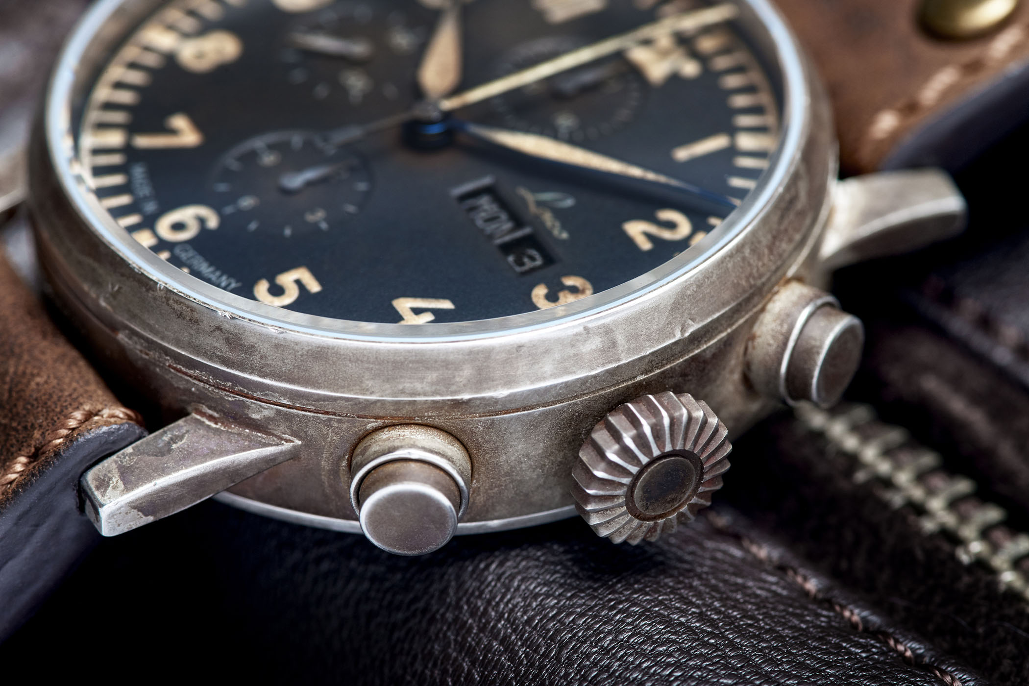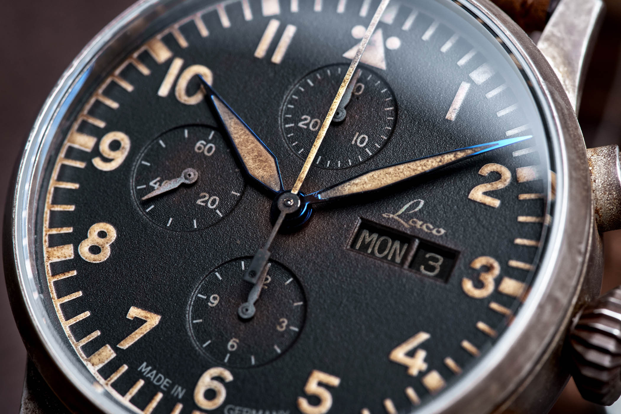 As we recently explained when reviewing the brand’s latest concept for customization, the rather cool Flieger PRO, Laco is one of the most legitimate watchmakers when it comes to pilot’s watches and Flieger instruments. One of the 5 manufactures to have crafted the original B-Uhr, this style has become a speciality for Laco, which has been playing strong on the vibe. Using the recently introduced München Chronograph as a base, Laco is now releasing a very exclusive limited edition that makes new… old again… And why such a small limitation? Because the Laco “München Erbstück” Chronograph Limited Edition is all about a special hand-applied surface treatment that gives this watch more than just a vintage vibe.