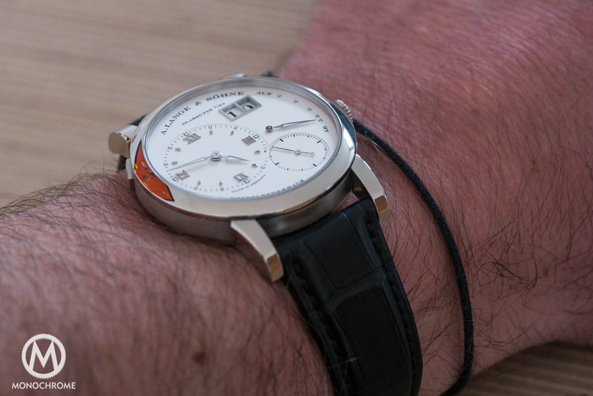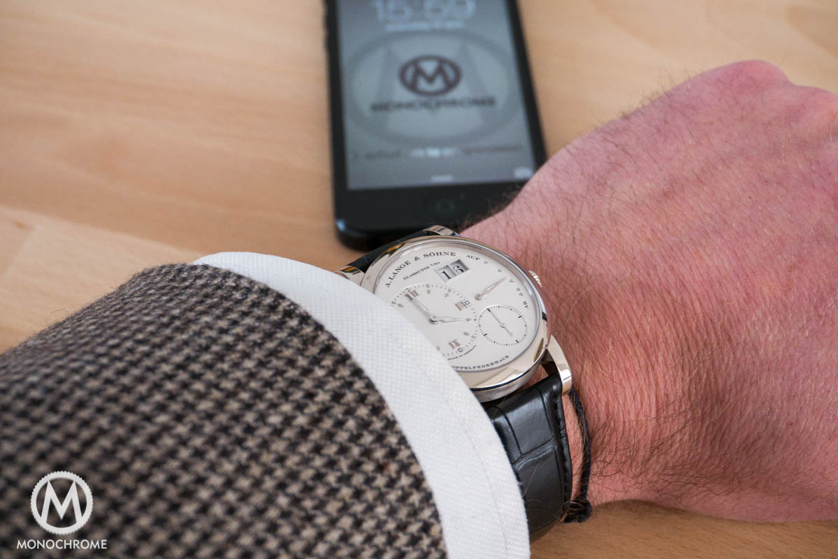 We have to realize that in terms of pricing, used materials, build, finishing, style, etc, the Lange 1 is positioned as a premium classic watch. Its peers are Patek Philippe, Vacheron Constantin, Piaget, Breguet and well, there are actually not that many watches that can level with it. Somehow that’s something that became clear during the test period; the Lange 1 is lonely at the top.