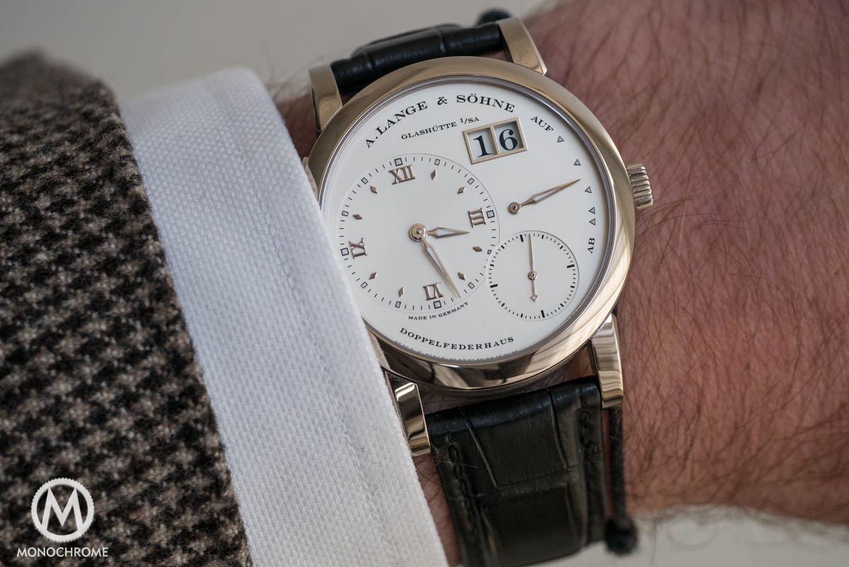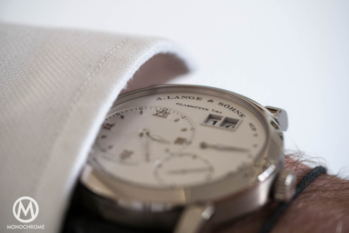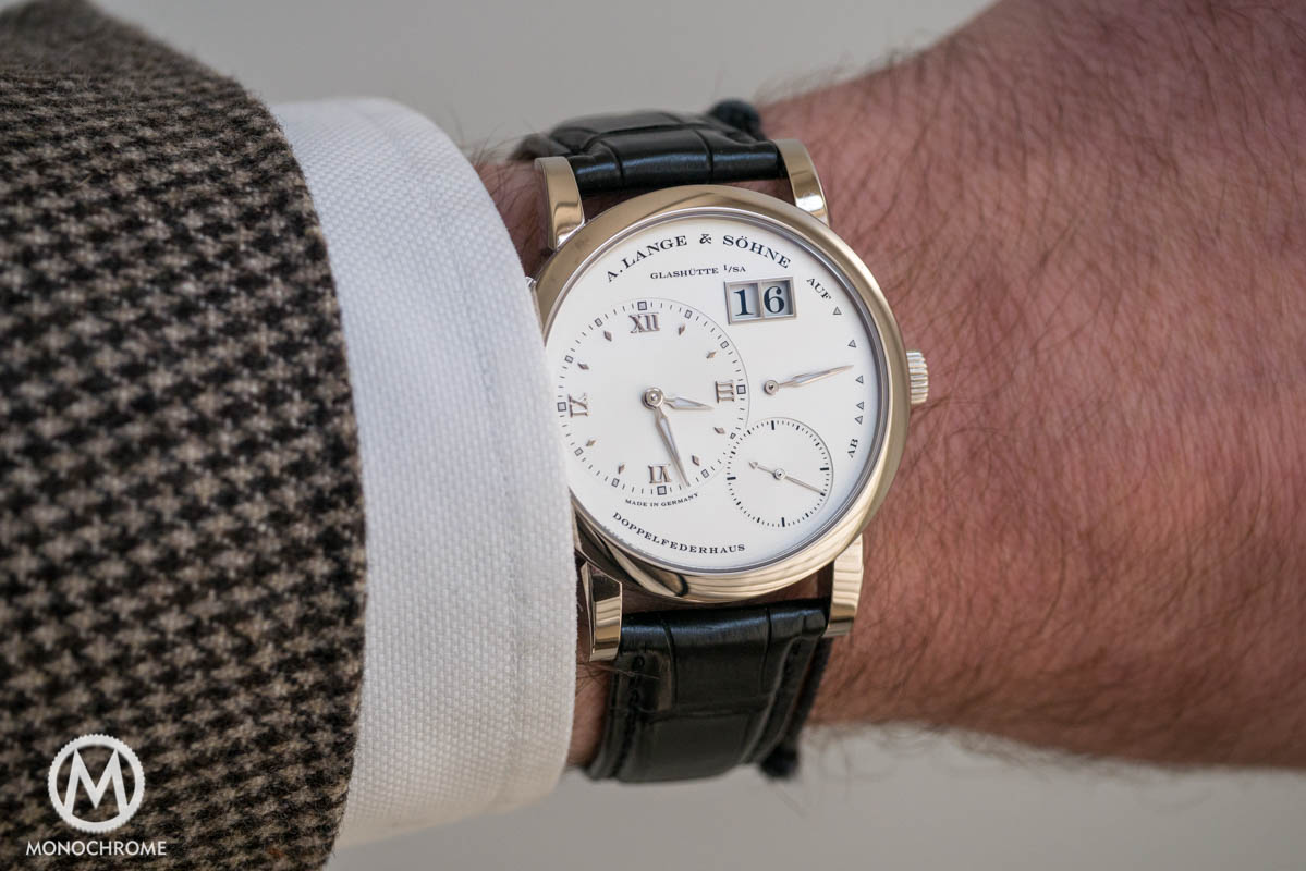 Now, how is it on the wrist? Every watch wears differently, feels differently, matches with different outfits/styles/occasions, etc. So in order to get a good idea of how it really is to wear it on a daily basis, I’ve been wearing a Lange 1 in white gold for several weeks.