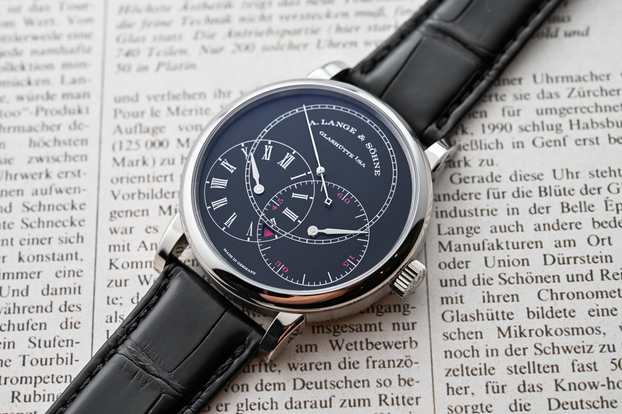 The white gold case of the watch is identical in size and style to its predecessors and has a moderate diameter of 39.9mm and a height of 10.6mm enhancing the watch’s wearability. The watch comes on a hand-stitched black alligator strap with a Lange prong buckle in white gold.
