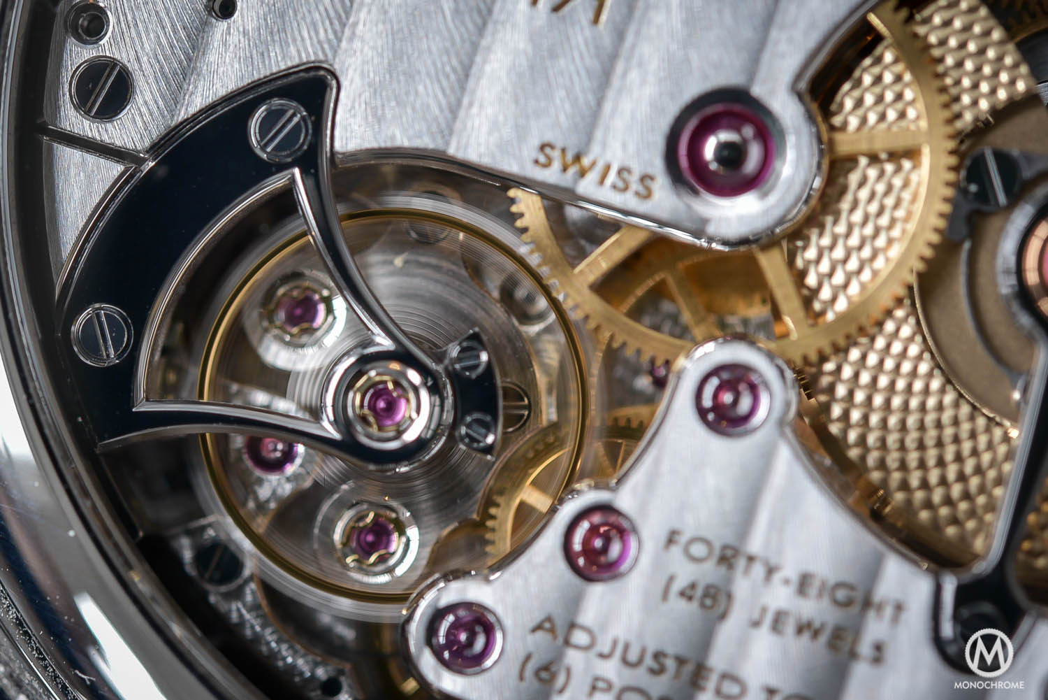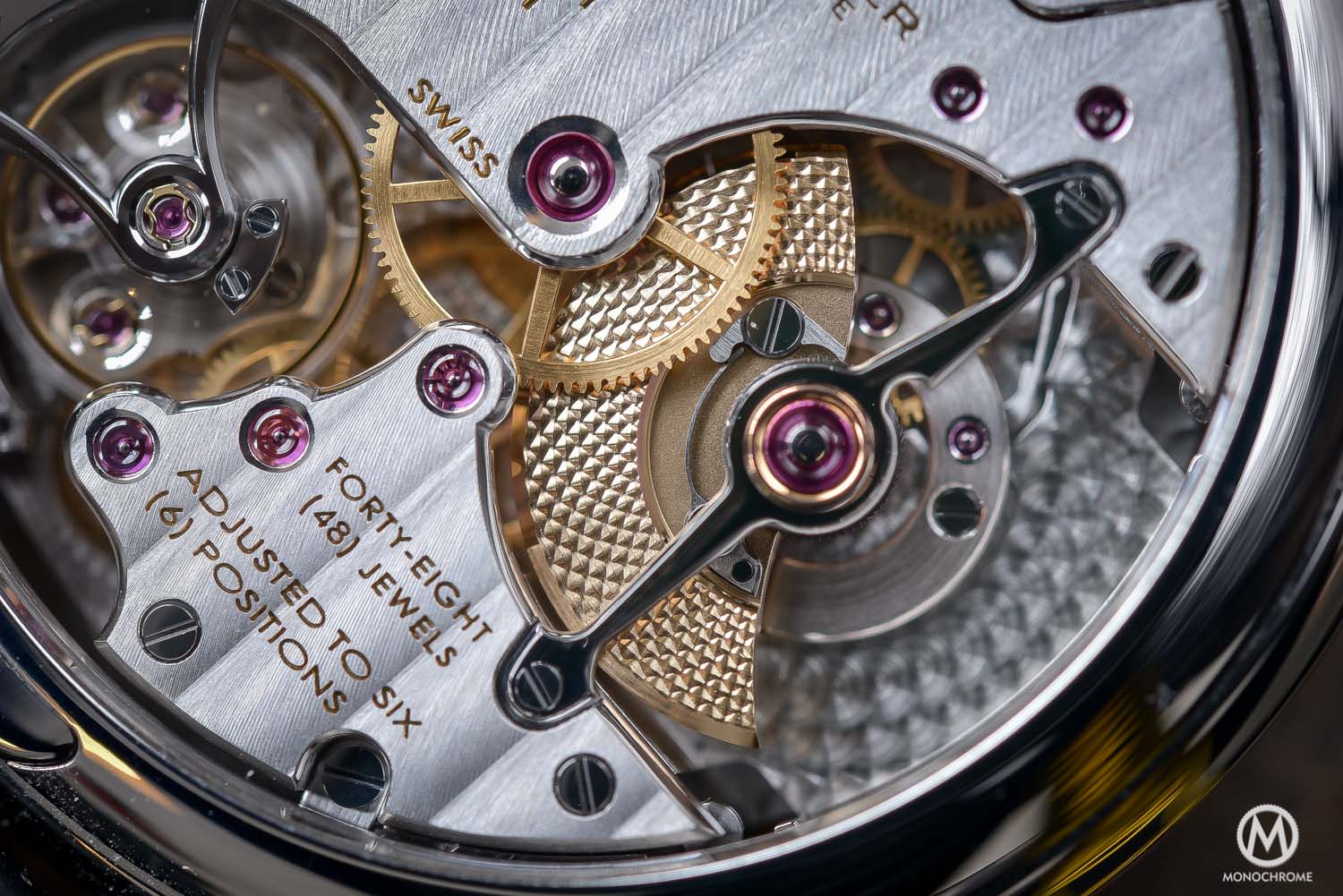 The result, as you can see for yourself through the exhibition caseback, is an aesthetically pleasing movement that has been beautifully decorated. We’ve covered the specifics at length in previous articles however so we won’t bore you with the details again here. Suffice to say though, we spent a lot time switching between staring at that rich midnight blue dial and then flipping the watch over to examine the inner workings of the movement.