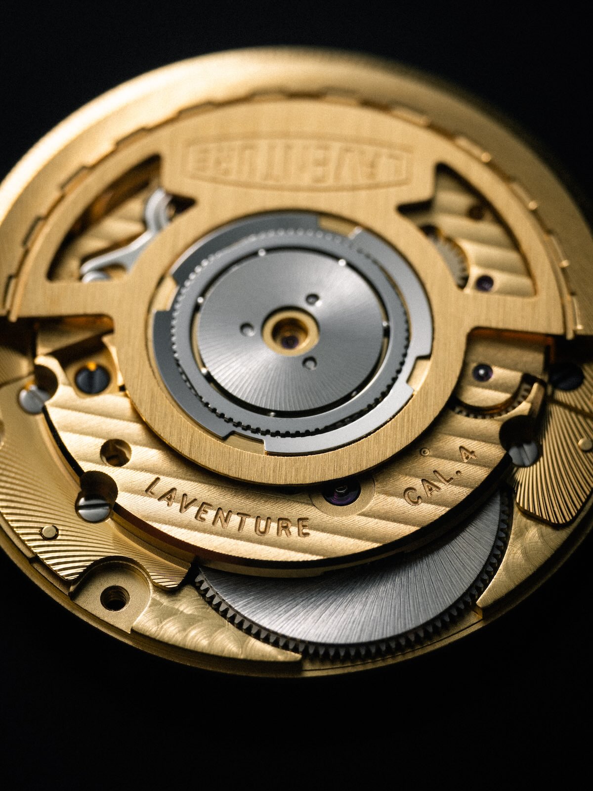 Inside the case of the Marine Type 3 is the calibre 4, a movement sourced from Sellita and based on the architecture of the SW300-1, itself an alternative to the thin ETA 2892. The specifications are classic: 4Hz frequency, 56h power reserve and stop seconds. However, despite the movement being hidden, Laventure opted for a high-end design. The plate, bridges, and rotor are all coated in 3N gold, and specific decorations have been applied, such as thin Geneva stripes, perlage, or circular graining. Additionally, the movement is chronometer-certified by COSC (precision of -4/+6 seconds per day, meeting 7 of the 8 elimination criteria).