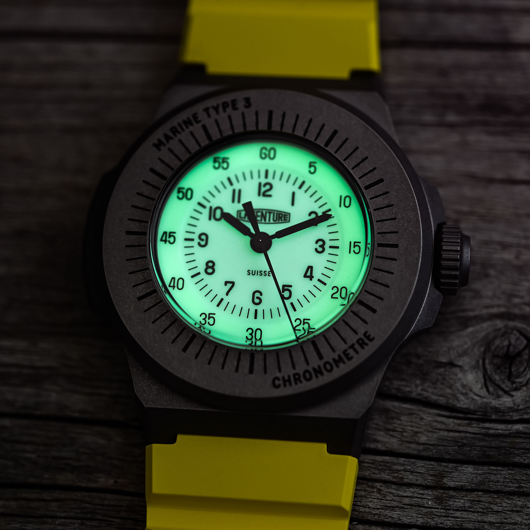 The Marine Type 3 caught me by surprise. While some try to add charm with adornments, this watch does the total opposite. Its brutalist, ultra-focused approach, its genuine tool watch design and feel on the wrist are the main reasons why it’s cool. For more details, please visit laventure.swiss.