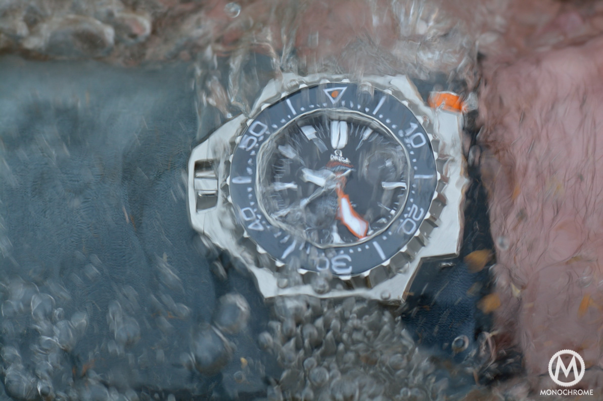 Having the watch for the purpose of this review, I must say that I am completely flabbergasted. Purpose built tool and military watches are my weakness, but the modern Ploprof defied any fears I had. First, the watch has some impressive dimension figures, however here I must add that numbers don’t always tell the truth. The watch is extremely wearable in the vast majority of occasions and the secret here is that it is relatively short from lug to lug. It hides its size pretty well, and it’s very comfortable despite its weight. The automatic Seiko Tuna (ref.SBDX011), the so called Emperor, and a tool dive watch of similar proportions was much more uncomfortable for example. Secondly, the modern Omega Seamaster Ploprof 1200m manages to retain the extreme tool diver character of the old one, embellished with modern design details that makes the watch appeal to the diver and the businessman as well. Last but not least the uniqueness of the Ploprof, which derives from its design, makes it a choice or should I say a statement for its potential buyer. It competes with heavyweights from Rolex like the SeaDweller Deep Sea, the Submersible from Panerai and the Tuna Emperor by Seiko, and manages to surpass them because it offers an amalgam of tool and luxury elements which its competitors do not possess. What struck me when I wore the Ploprof was that anyone who saw it, from people who know about watches and for those that don’t, commented positively about its quality of construction followed by the coolness factor it possess in abundance I think.