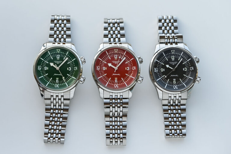 The original Legend Diver by Longines is a model dating back to 1959, under the reference 7042. Back then an oversized dive watch, measuring 42mm (imagine that in the late 1950s…), it was part of a series of compressor watches made using the Piquerez EPSA case construction, with a clever gasket-and-spring system that compresses as the water pressure builds, effectively upping the water resistance as you go down, as well as a dual crown architecture and an inner rotating bezel. When it came back in 2007 and ever since, the LLD is no more a proper compressor dive watch (there’s a traditional screwed back) but it has kept the overall intention alive, with the inner rotating bezel actuated by an additional crown at 2 o’clock. And yes, the design is deeply rooted in the past.