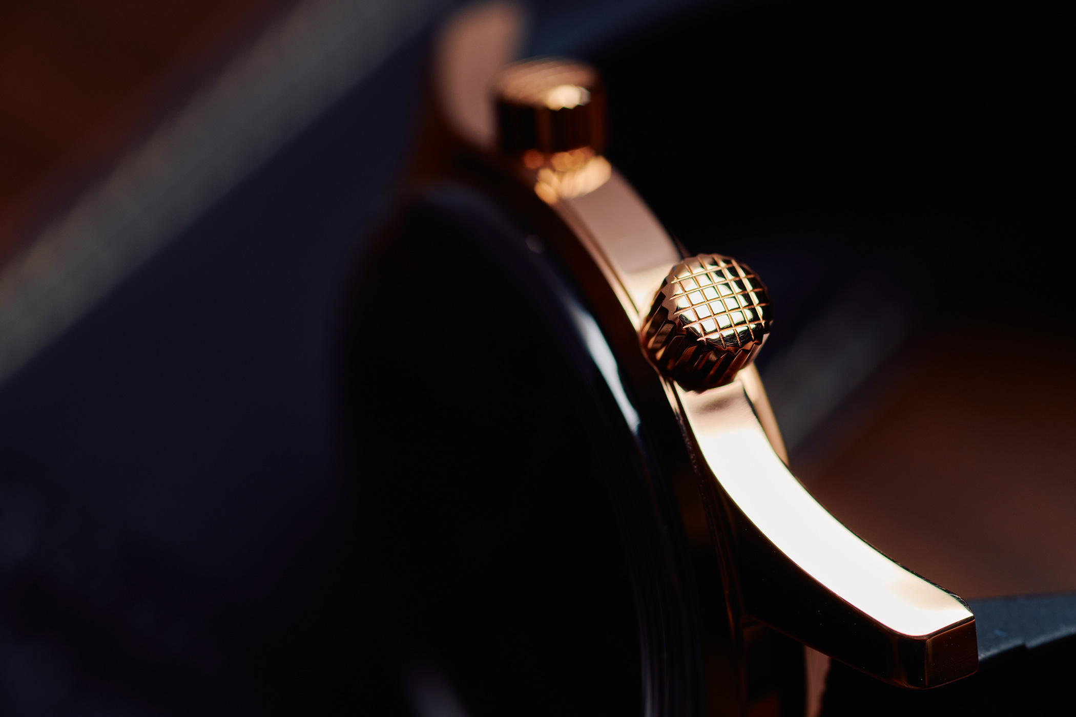 The case of this Legend Diver for the Polish market is made of 18k pink gold, entirely polished and shaped like the original stainless steel models. The case retains its proportions at 42mm in diameter and 13.6mm in height. The lugs are still rather long, making the LLD a watch with presence. The right side of the case is still equipped with its signature double-crown – one to wind the movement and adjust the time, the second one to activate the internal rotating bezel. These two crowns have the typical grid pattern for better grip. The caseback is gold, yet it retains the same embossed diver logo as other LLD watches – which is identical to the 1960s versions.