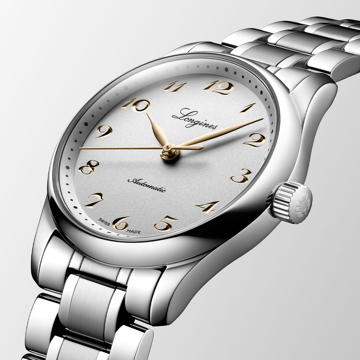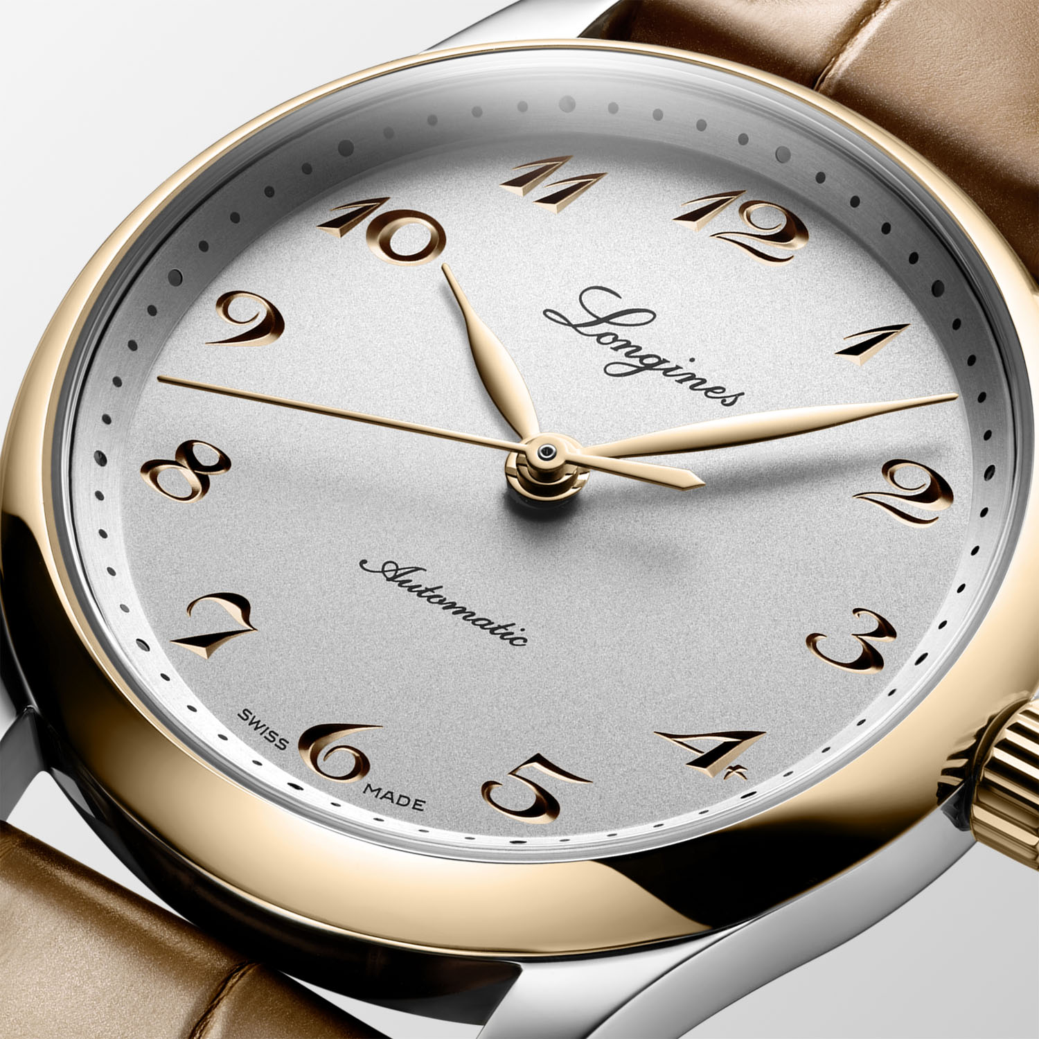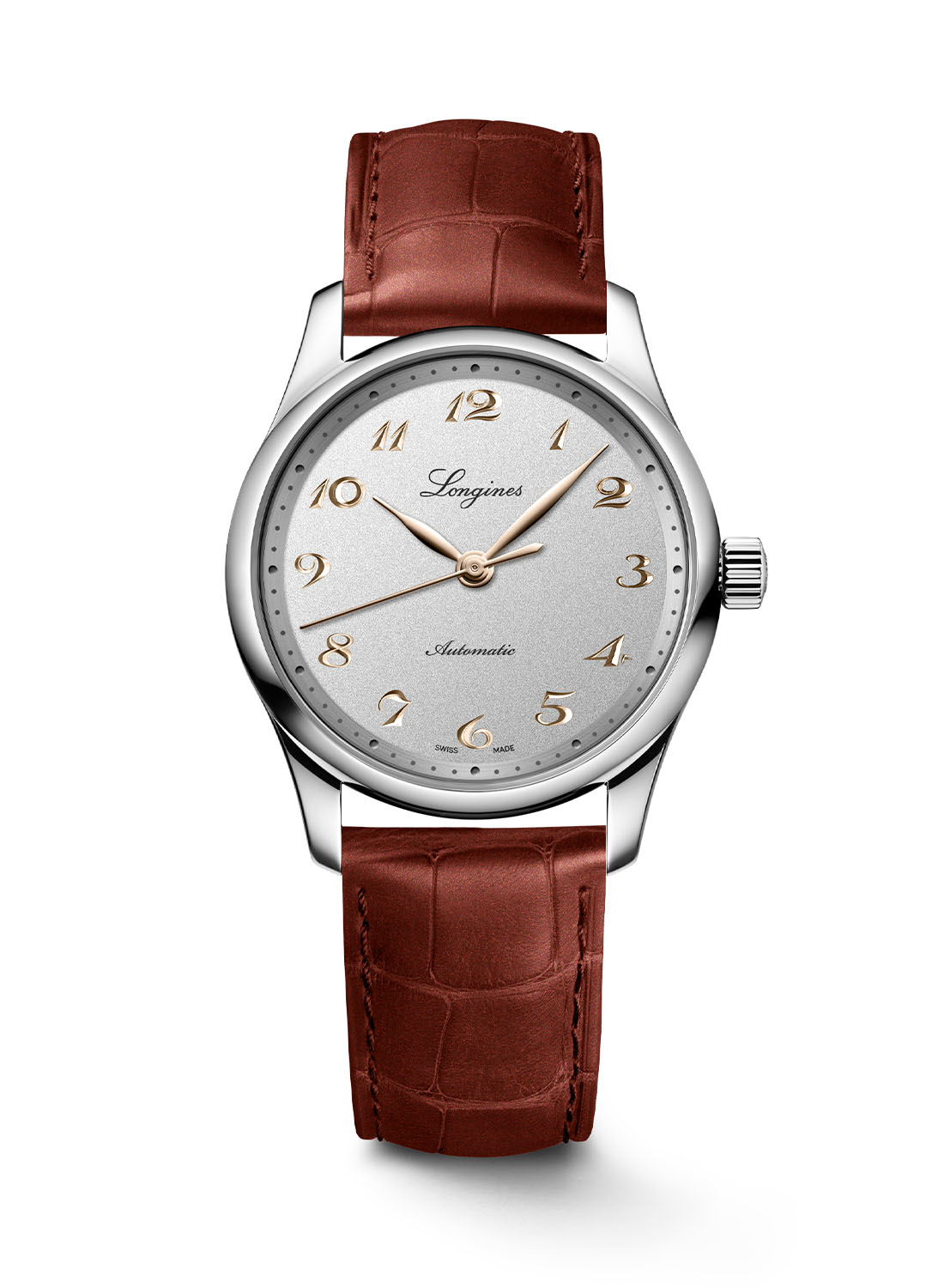 What strikes most with these new watches is the dial, which relies on a silver-toned and sandblasted base, bringing a refined matte aspect with a discreet sheen – something we’ve experienced with the 190th-anniversary collection. The beauty of these dials comes from the 12 engraved Arabic numerals, adding depth and elegance to an otherwise classic watch. For the new editions, these markers can be selected in anthracite, yellow gilt, or rose gilt, with respectively blued steel, yellow gilt or rose gilt polished leaf hands. All dials are finished with the historic Longines logo in cursive font, and a beaded minute track on the brushed inner flange.