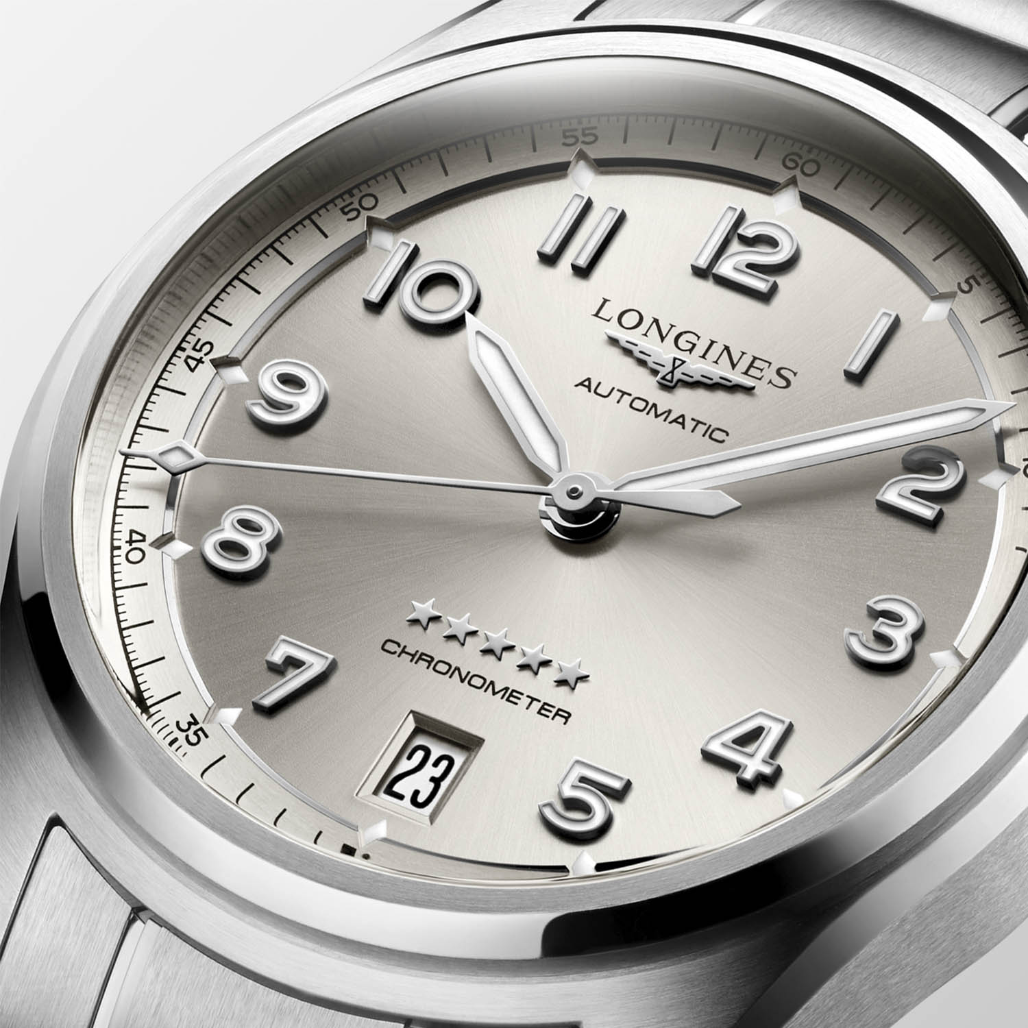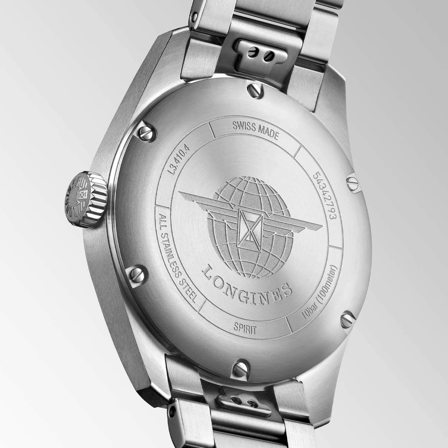 Powering the Spirit 37mm collection is the same calibre L888.4 from the larger time/date models, which is based on the ETA 2892 automatic. If you look at the dial, you’ll see five applied stars above the date window at 6 o’clock, which is a tradition for Longines and means that the watch carries a COSC certified movement (-4/+6 seconds per day). It features 21 jewels, beats at 25,200vph and has a 72-hour power reserve, and also comes with an anti-magnetic silicon balance spring. Functions include central hours, minutes and hacking seconds with date.