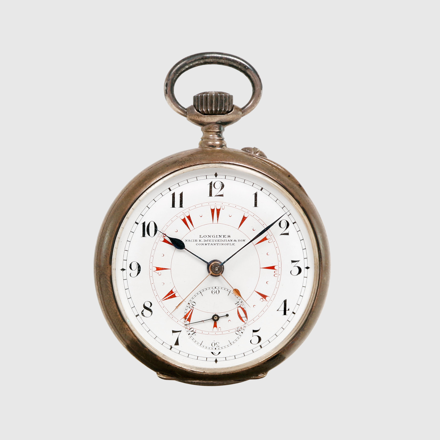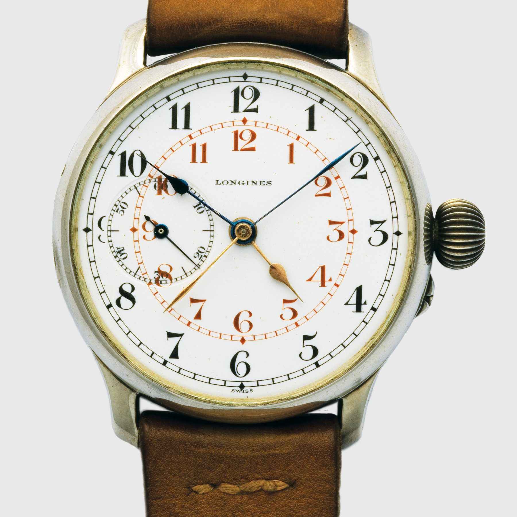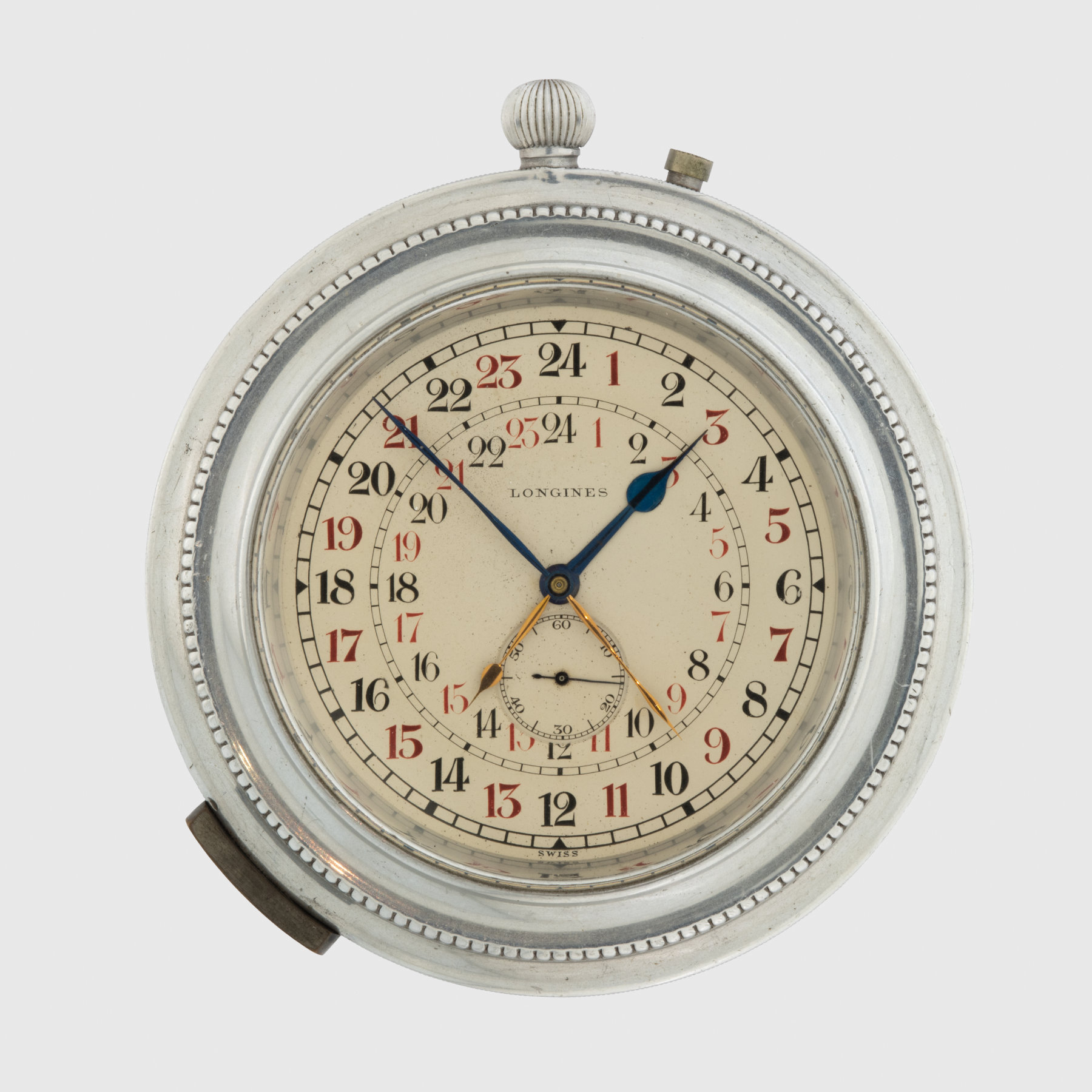 When it comes to watchmaking for the skies, Longines is a true pioneer in the field. Back in 1908, the company created a pocket watch with two time zones on a single dial. It had dual hour and minute hands to easily convert Turkish time to Western European time (see below, left). This type of display, with split time on a single dial, can also be found in the Weems watch from 1930 (see below, right). A legendary piece in Longines’ archive, the hands could be set independently to yet again indicate the time in two different places on earth.