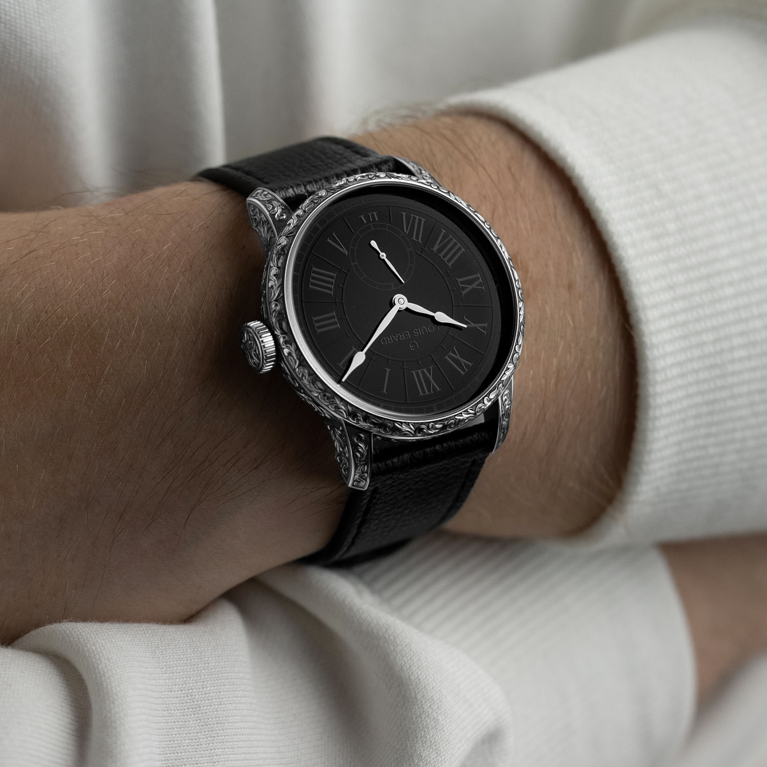 The Gravée Main is worn on a black grained calfskin strap with tone-on-tone stitching, closed with a steel pin buckle that is, like the case, hand-engraved. Quick-change spring bars make swapping straps effortless, though the watch’s unity of design invites keeping the engraved buckle as part of the whole. Limited to 99 unique pieces, the Louis Erard Gravée Main is priced at CHF 5,450 (before taxes). For more details, please visit www.louiserard.com.