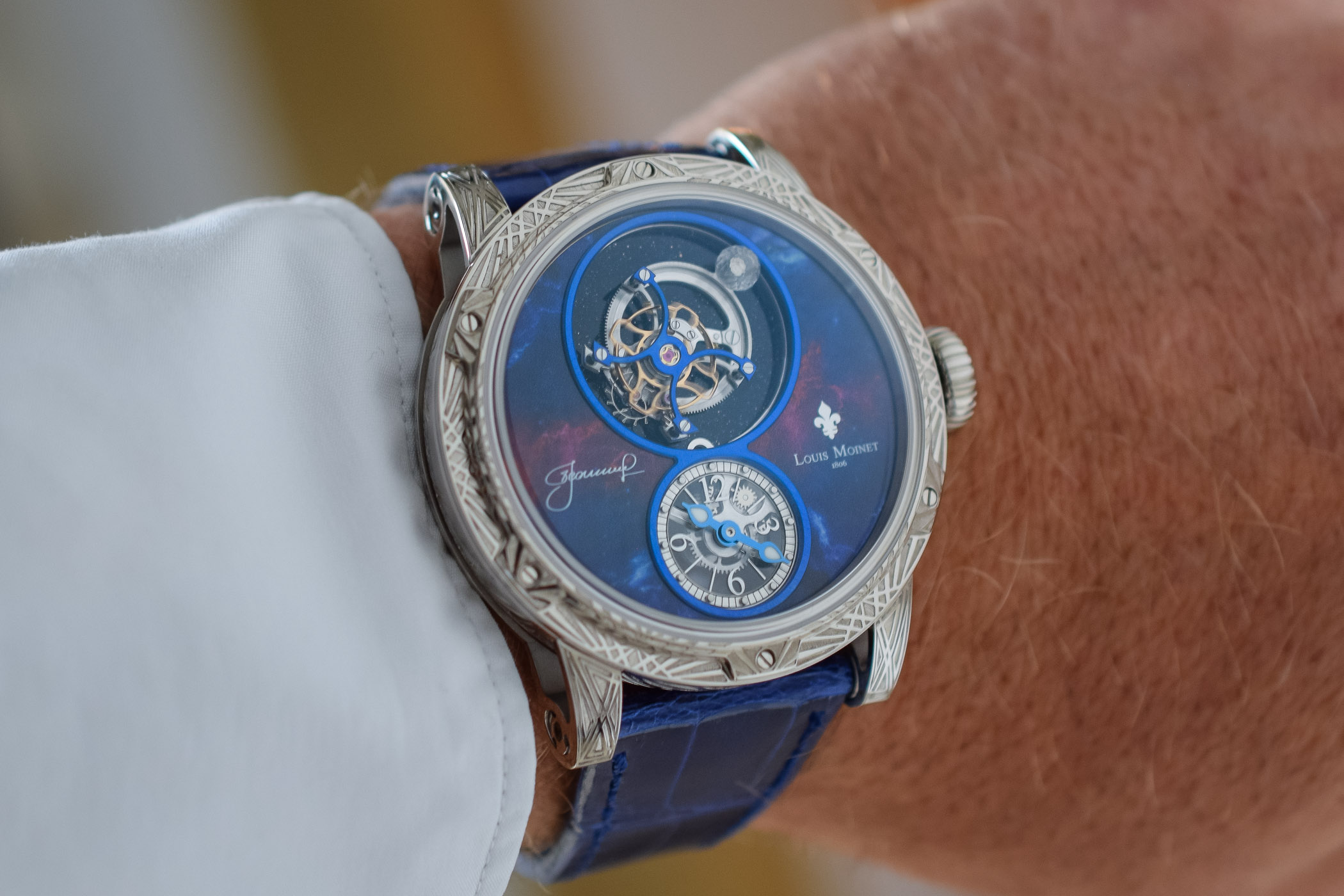 Obviously a watch like this is limited, and in this case, the engraved white and rose gold Louis Moinet SpaceWalker is limited to 12 pieces in each metal, while the non-engraved version will be made in a run of 18 pieces.