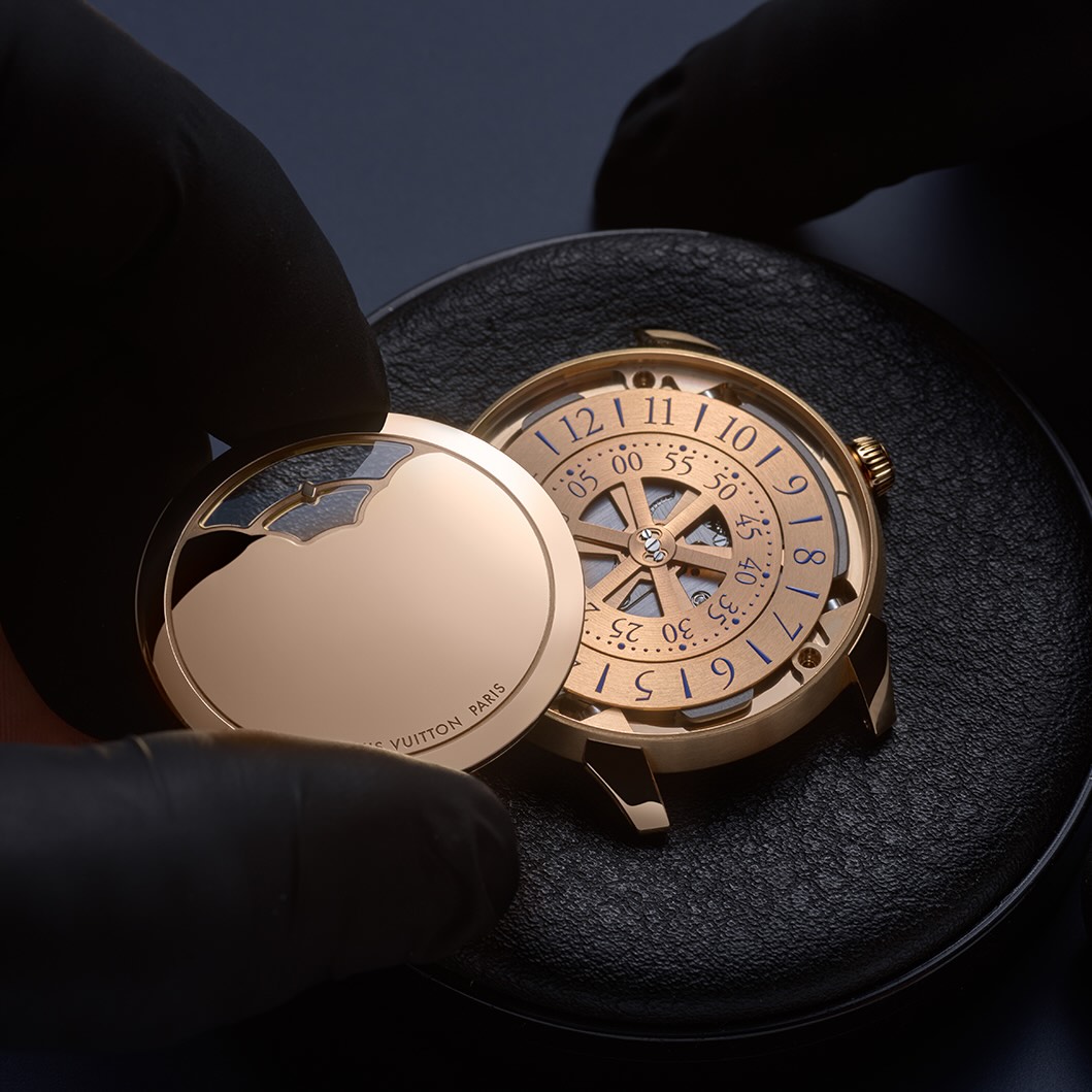 Inaugurating the brand's new in-house automatic movement, LV reinterprets the "montre à guichet" concept.