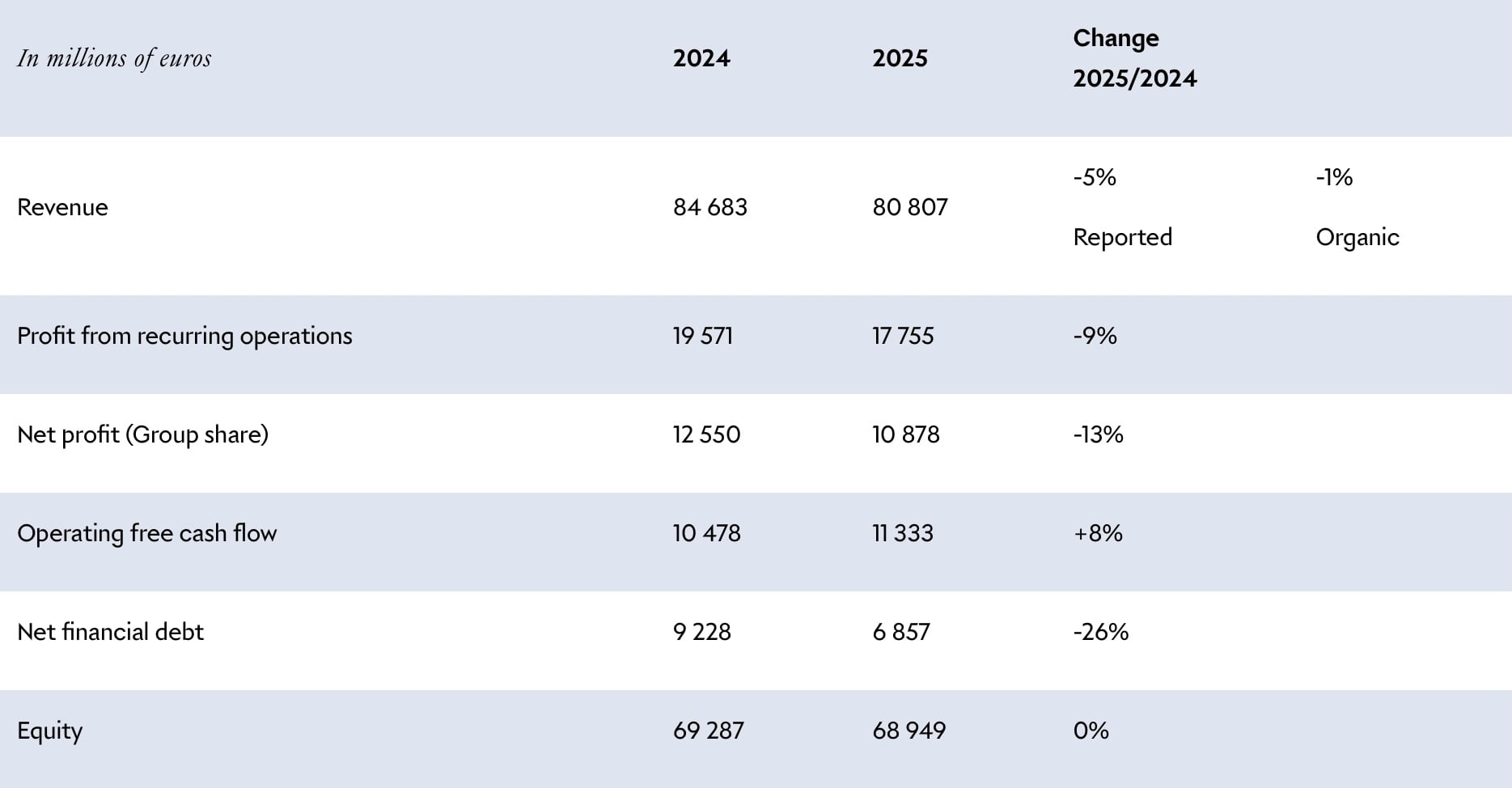 The group reports a decline in demand in the second half of the year for Europe, while the United States saw growth, benefiting from solid local demand. Japan, which was performing particularly well in 2024 due to a weak yen and was consequently boosted by growth in tourist spending, now sees its sales down. On the other hand, the rest of Asia saw a noticeable improvement in trends with respect to 2024, with a return to growth in the second half of the year. The group’s results are particularly affected by the weaker demand in leather goods and fashion (down 8%), as well as wines and spirits (down 9%).