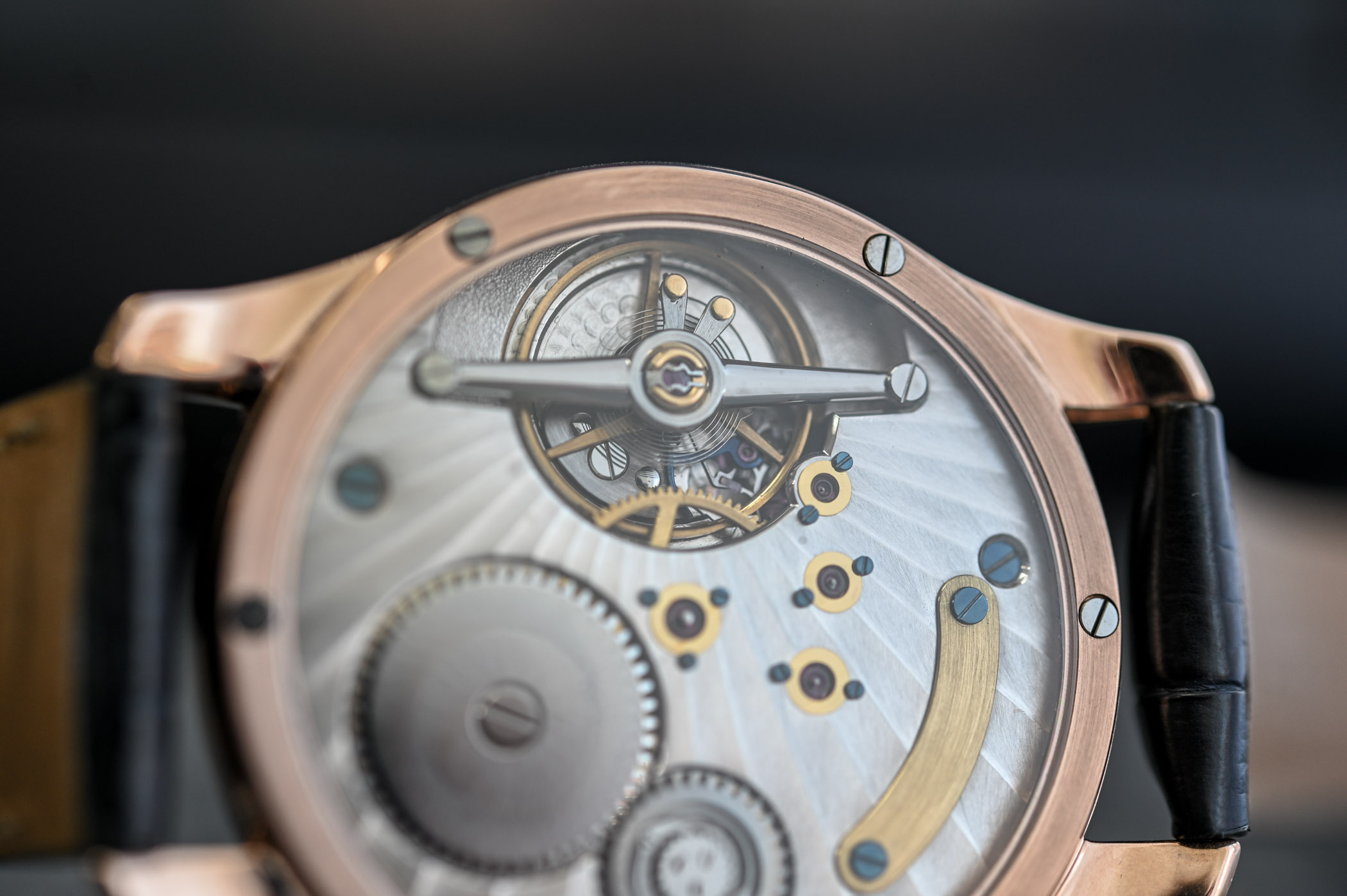 He wants to make all parts himself. Of course, that doesn’t mean he’s going to catch the alligators for the leather strap, or make his own balance spring, but if he could, he would. Every screw, every wheel, every single part that can be made in Hilversum, the Netherlands, he makes in his humble workshop. That means a very strict schedule, and of course some frustrations. “Sometimes you really question your own sanity, to do all this,” Hulsman says. “I even do the polishing of the rubies myself. Every so often, I encounter a problem and I think to myself: what on earth is this problem now? One time I had worked on one part for days and just before it was finished, it dropped on the floor. And because it was so small, I just couldn’t find it anymore.”