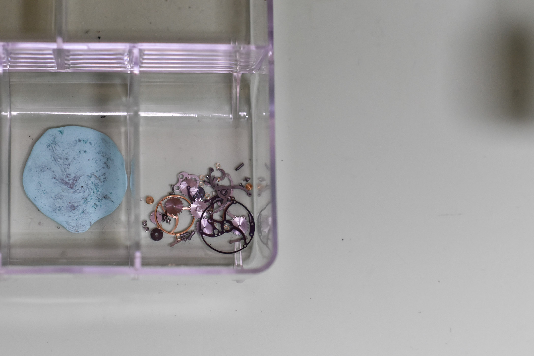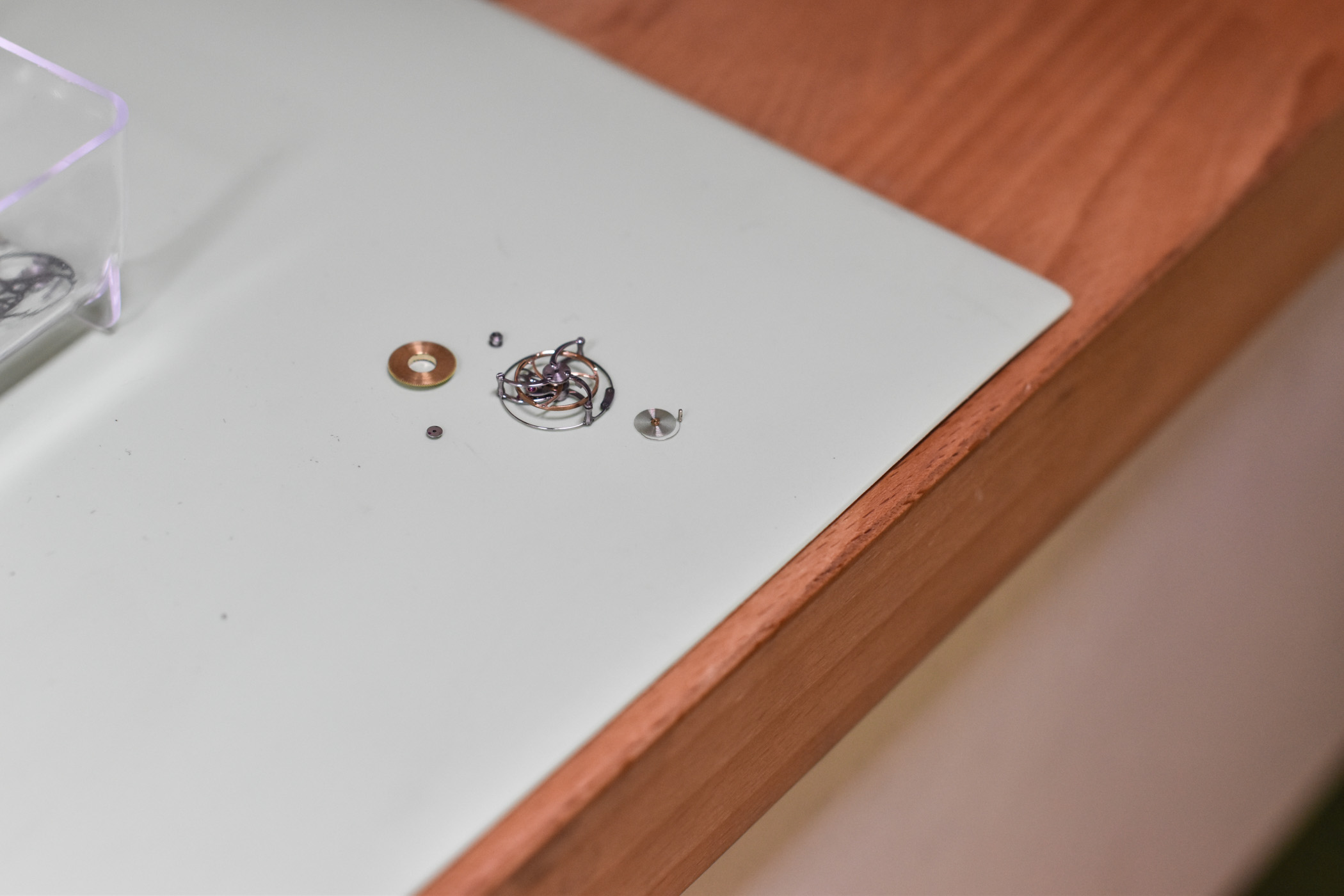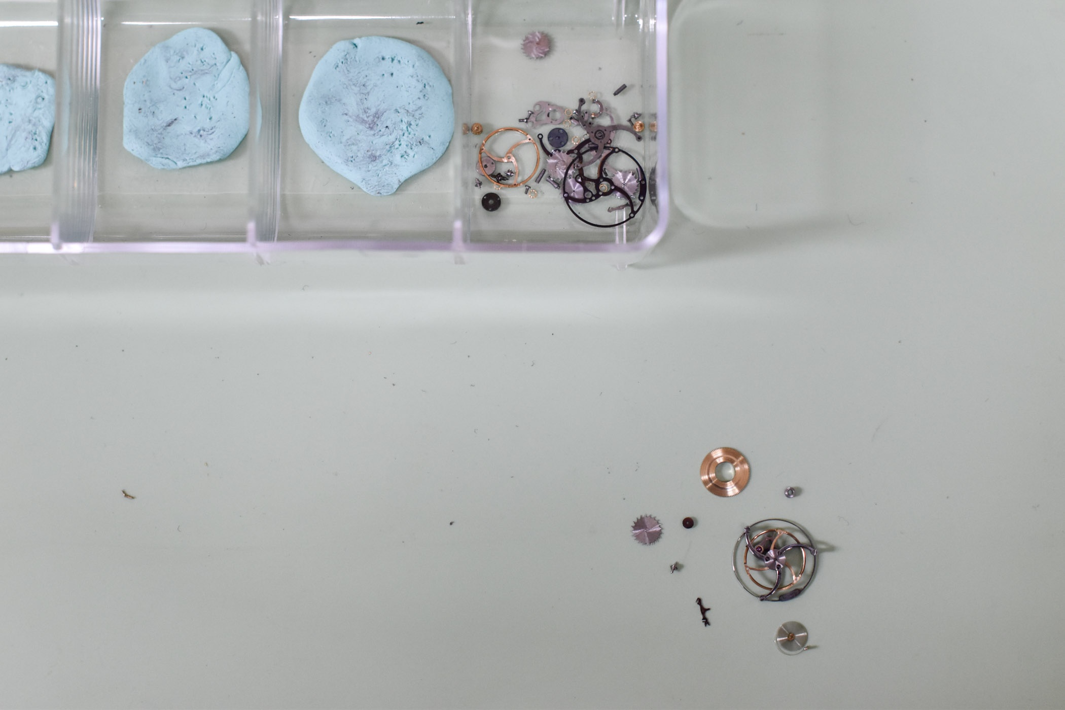 In May 2019, the client gave his final go, and after a couple of months of development work on the computer, Hulsman started making the first parts. “The initial calculations on the computer are actually the easy part. Then reality comes in…” He shows me the box where he stores all the components for the tourbillon cage. It looks like nothing impressive. “It took me months to make these parts,” he says. “The margins are so small, there are so many moving parts… it has to be done with the utmost precision. But the entire tourbillon escapement should be done before the end of this year.” (The interview was done in Q4 2019)