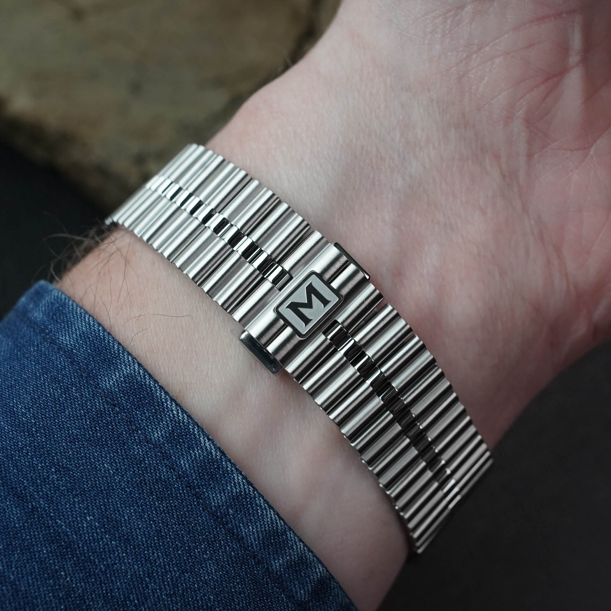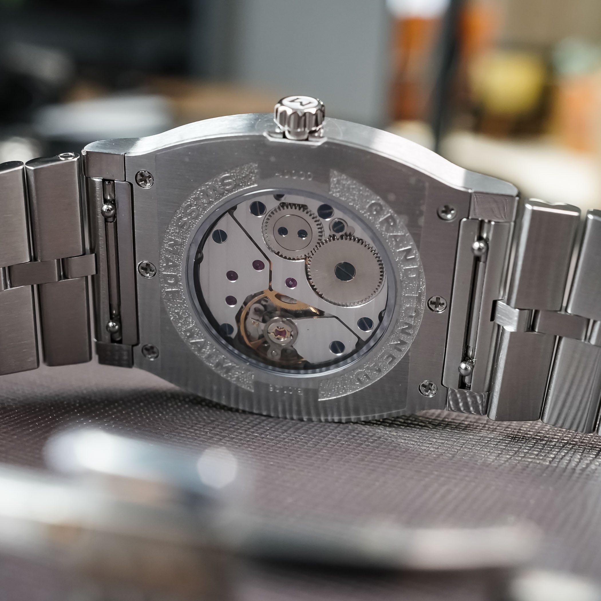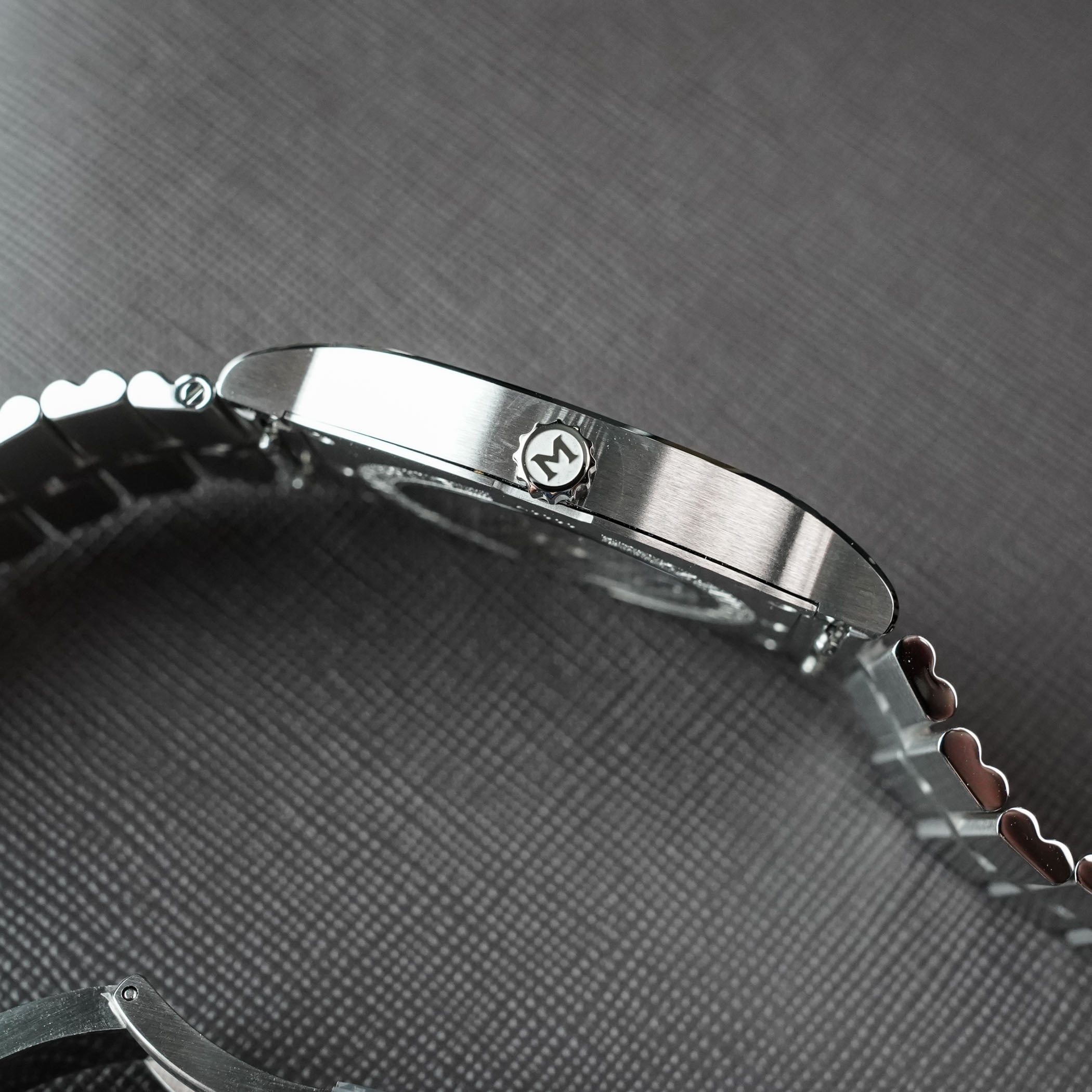 While the textured rubber strap that was found on the Jump Hour model is still included with the watch, the Maen x Nico Leonard Grand Tonneau Ultra-Thin also inaugurates a new metal bracelet, with a rouleaux-style profile and a triple-folding clasp, as well as a quick-release system.