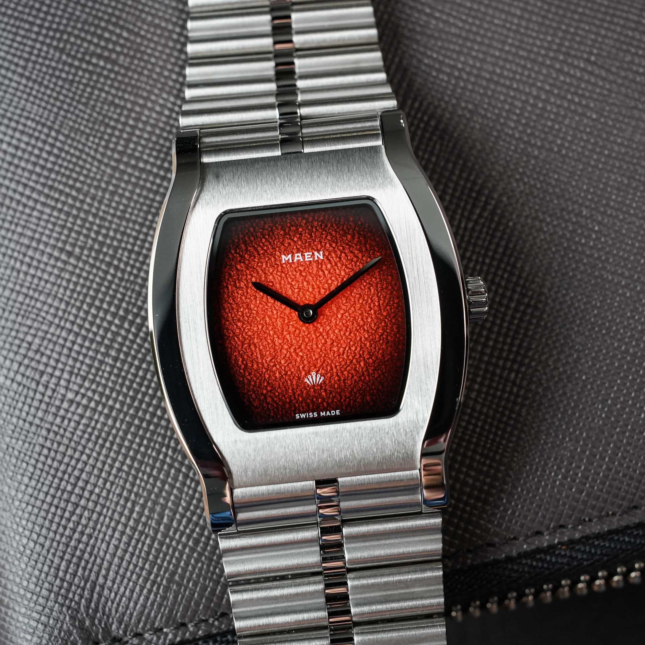 Stockholm-based, Dutch-rooted microbrand Maen is now a rather familiar face, being known for compelling and accessible watches such as the Skymaster Chronograph or the Manhattan series. Last year, however, the young brand made quite some noise by collaborating with Nico Leonard, a fellow Dutch watch YouTuber, widely known for his outspoken style. The result was a fresh, accessible take on the jumping hour complication, housed in a tonneau case. The two parties are back this year with a new watch, drawing inspiration from their inaugural collaboration yet more classic, thinner and everyday-oriented, the Maen x Nico Leonard Grand Tonneau Ultra-Thin.