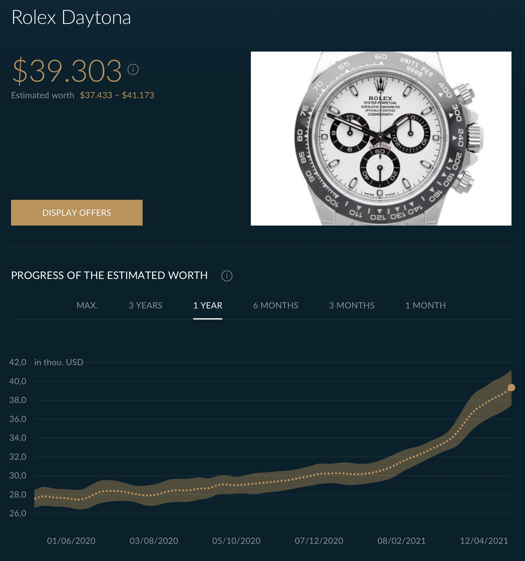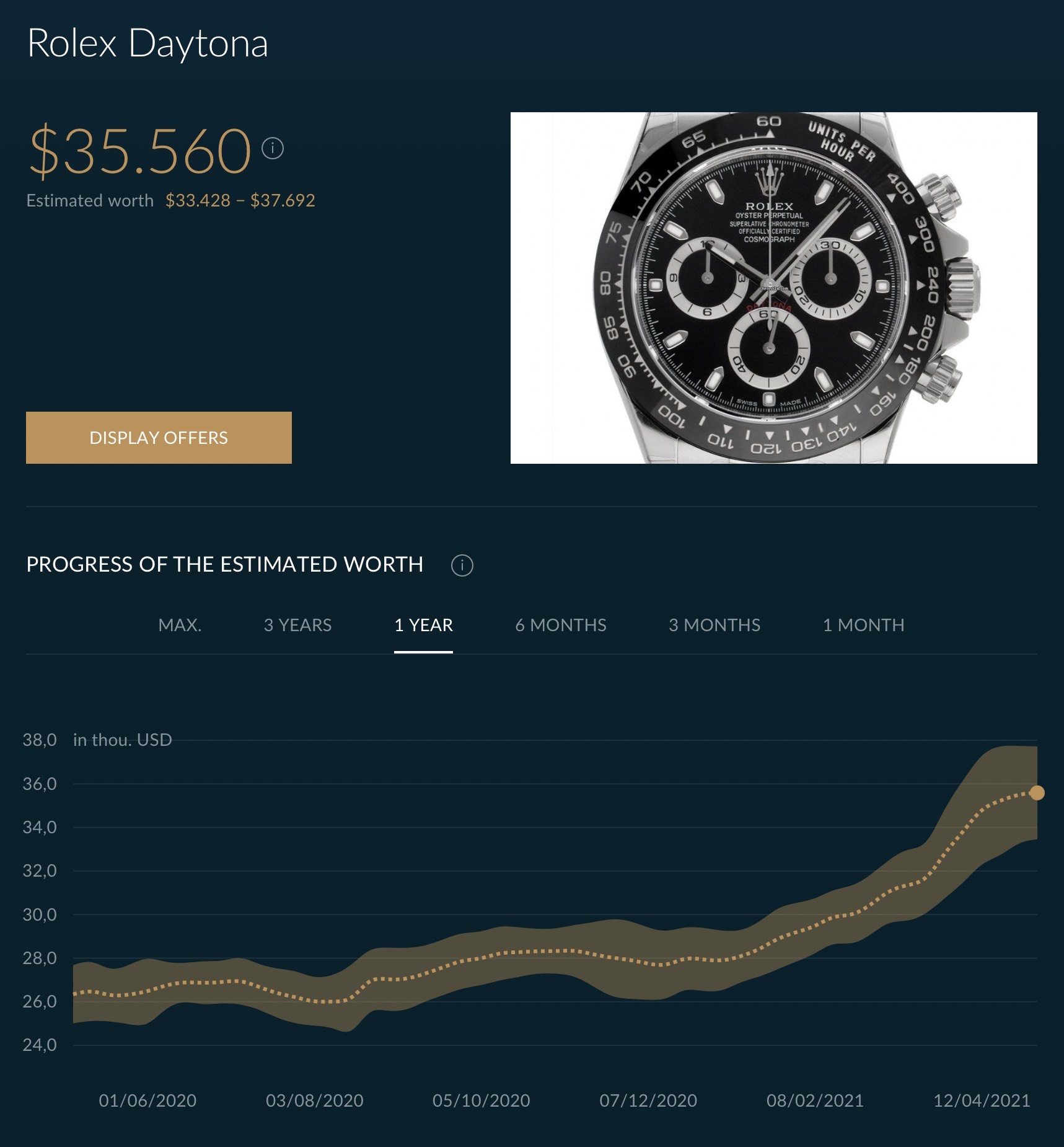 The Rolex Daytona is a watch that I’d love to own one day. Along with the Speedmaster, it is one of the most iconic chronograph watches on the market; and one of the best in terms of quality and specifications. But I am never going to pay a 100% premium over retail price to acquire a watch (really, NEVER). Still, I occasionally track the prices of the Rolex Daytona 116500LN on the second-hand market. Last time I checked, these were listed at around EUR 25,000 or USD 30,000, which I thought was already quite insane (that is double the retail price). This morning I woke up, and an ad for a Daytona popped up in my Facebook feed with a price of EUR 35,000. First, I thought it was a joke or a mistake. How could the price have jumped EUR 10,000 in just three months? To my surprise, it was not a mistake, and I confirmed it by looking at Chrono24’s tracking tool. Indeed, the Rolex Daytona 116500LN has become even more inaccessible than I had ever imagined.