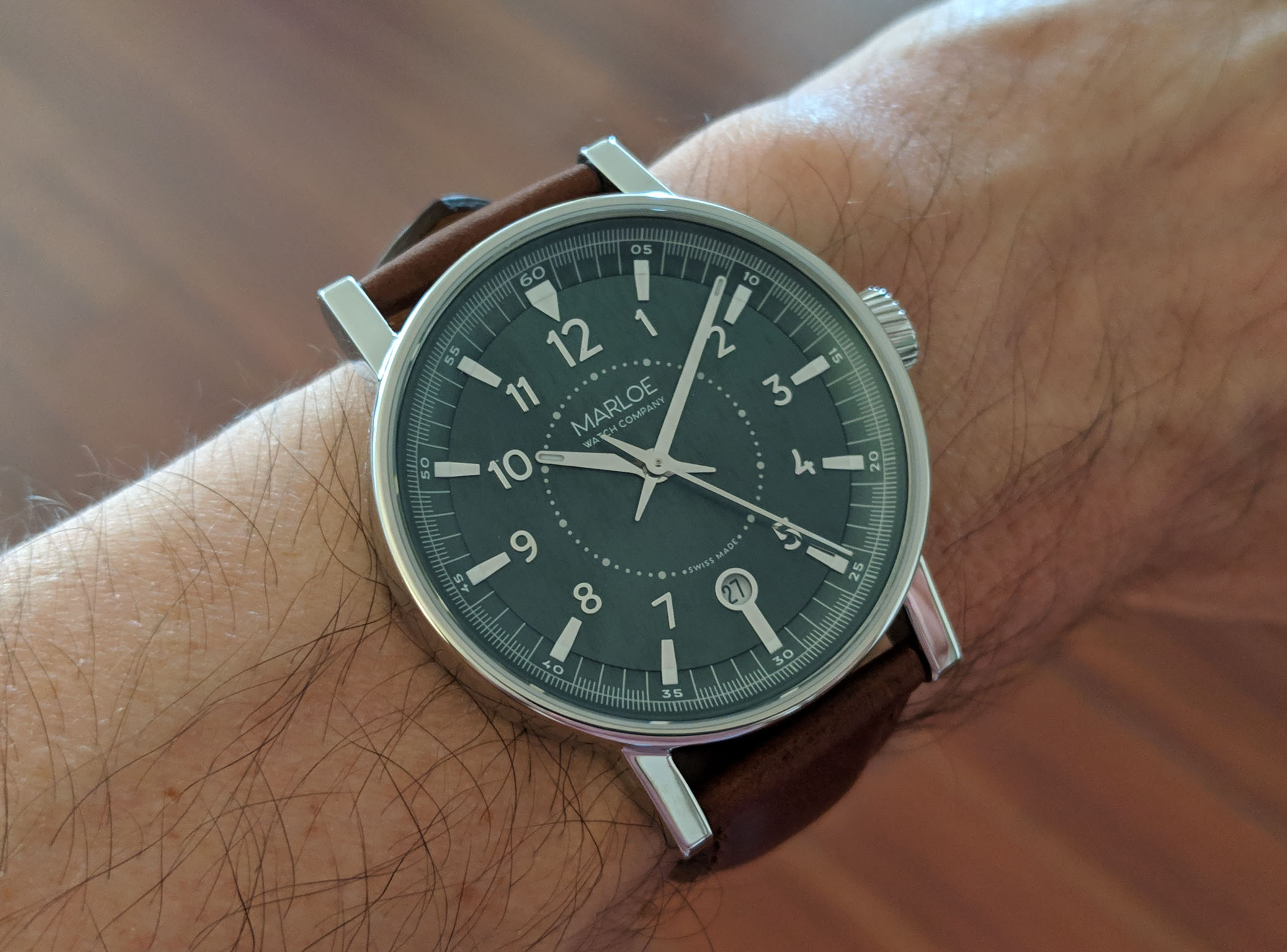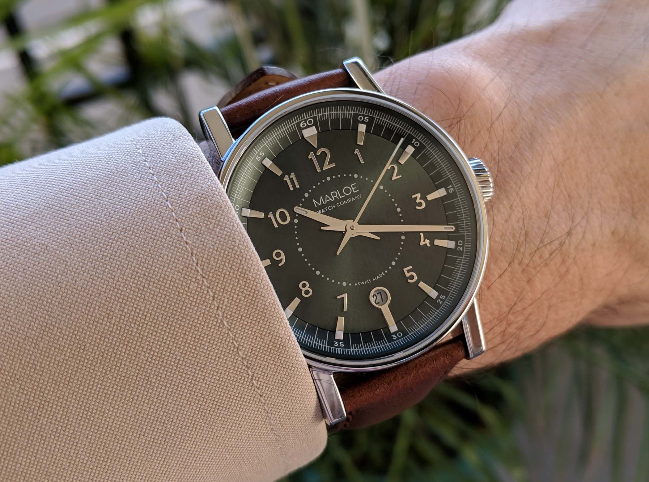 If you read my editorial comparing microbrands to established brands, you’ll know that I’m a fan of the quality and unique designs that a growing list of microbrands are offering. They may not have the marketing or mass production capabilities of the big leaguers, but a brand like Marloe is producing compelling, well-executed watches and the Haskell is one I would proudly wear. The green sunburst dial is very eye-catching and the polished, barrel profile of the case looks great. The small details, like the equal counterweights of the hands or date window that’s integrated with the 6 o’clock index, are standout features for me. I’ve always appreciated that type of careful design. Marloe might not be as well-known as Tissot or Hamilton, but it sure can build a watch just as nice.