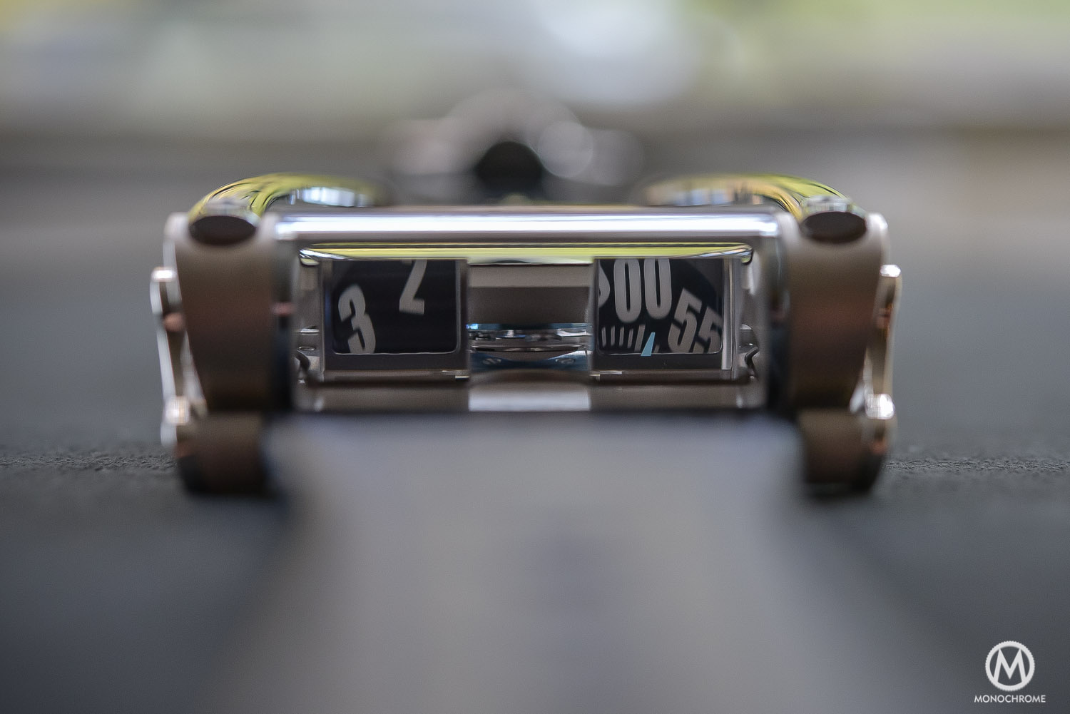 First of all, no worries, HM7 will exist, but not now. It will come in 2017. The development of both the HM7 and the HM8 started at the same, about 4 years ago. Both were ready a few months ago, however, MB&F teams decided to launch just one of the 2 watches. Why launch HM8 and not HM7? This year is the 50th anniversary of Can-Am, so it makes sense to celebrate the jubilee of the inspiration behind the watch. Then, why not call this watch the HM7, just to follow the nomenclature? In fact, as you’ll see, HM8 is a sort of mix of the HM5 (for the driver’s display) and the HM3 (for the Astro-blade shaped rotor on the top of the watch). HM8 = HM3 + HM5… Simple!