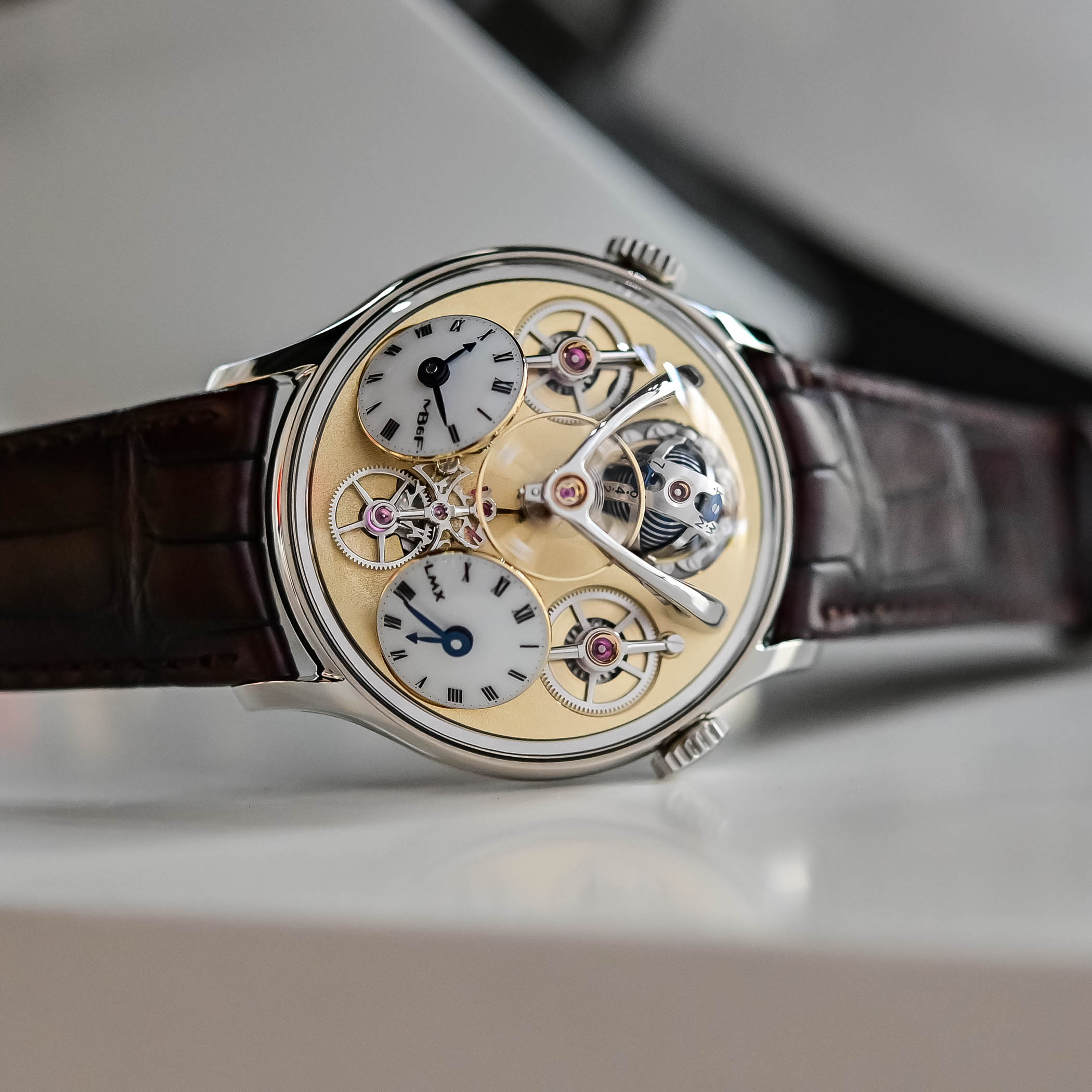The guiding light behind the Legacy Machine was to explore what kind of watch Max Büsser would have dreamed up had he been born in 1867. Packed with aesthetic nods to traditional watchmaking codes of the 19th century, the Legacy Machine embraced MB&F’s dynamic kinetic touch with an elevated 14mm balance wheel suspended in the centre of the dial (you can read all about the evolutions of the LM in this article).
