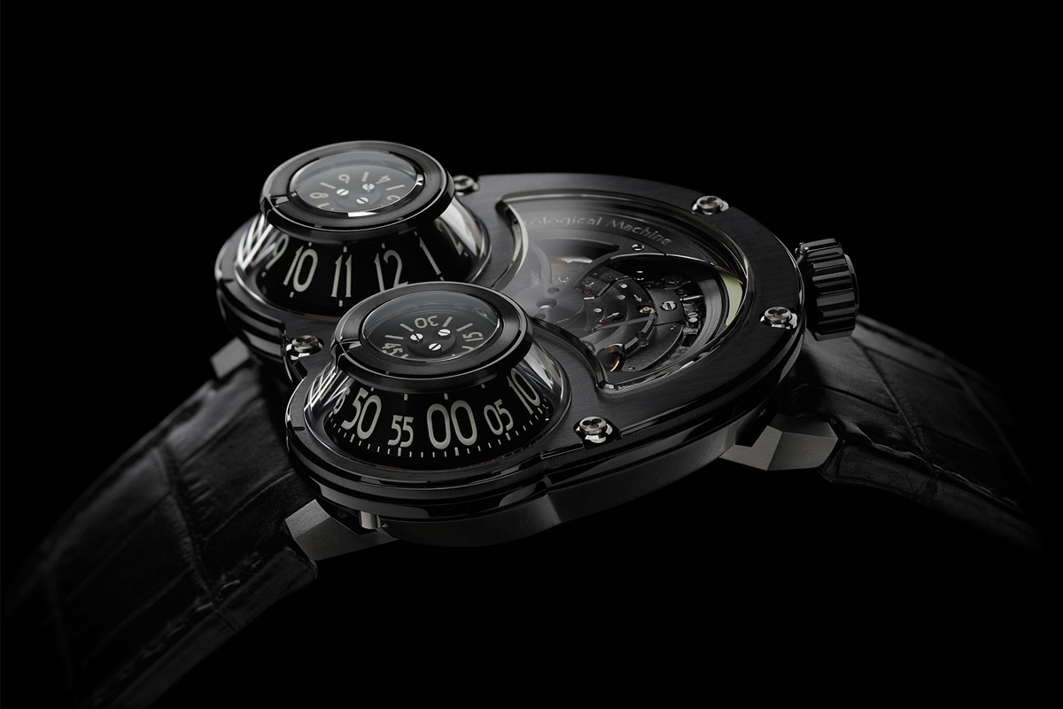 This HM3 Final Edition is presented in a new case finishing. It is made of black PVD-treated 18k gold and titanium while the classical editions were available in 18K red gold or in 18k white. This Final Edition features a full black theme, as the 3D hour and minute cones and the oversized rotor are also finished in black.