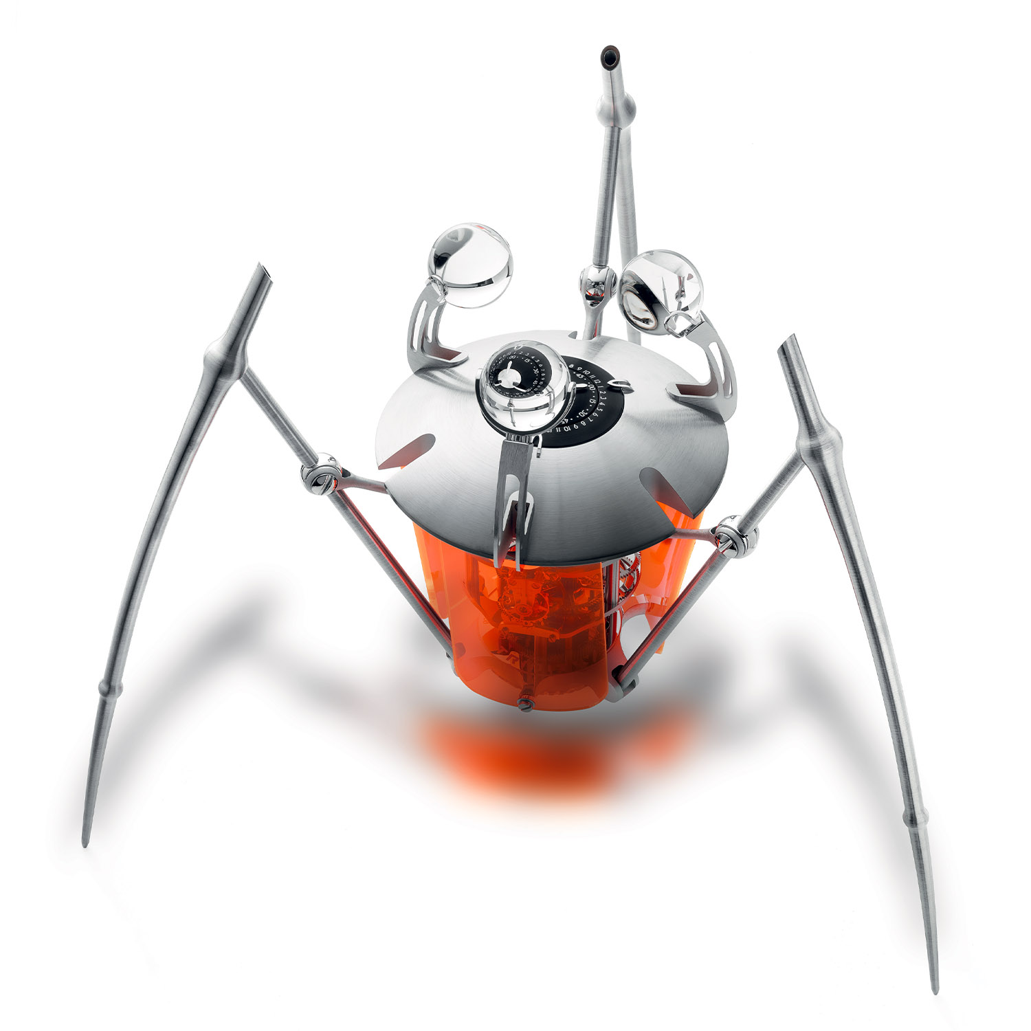 MB&F expands its menagerie of Robocreatures with the release of TriPod, a table clock developed with Maximilian Maertens and Swiss clockmaker L’Epée.