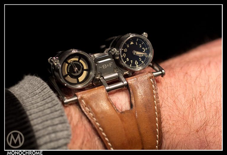 Another WWII reference is the leather for the straps on Razzle Dazzle and Double Trouble. MB&F used leather from genuine vintage Swiss military issue bags. Superb details if you ask me.