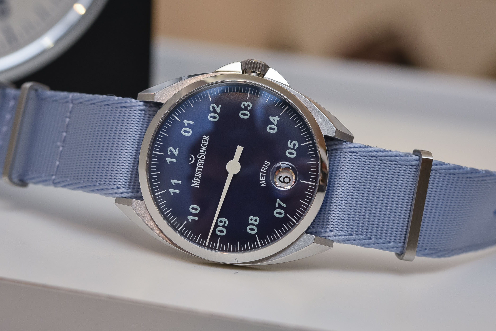 Meistersinger, the brand that offers (mostly) single-handed watches and that we’ve come to love, is stepping up its game. New movements, new complications, new concepts to display time with as few hands as possible without straying from the ‘less is more’ approach to timekeeping that characterises its collections. Last year saw the introduction of the unusual but cool Meistersinger Salthora Meta X dive watch, and this year Meistersinger introduces a new kid on the block; the young, fresh and accessible Metris.
