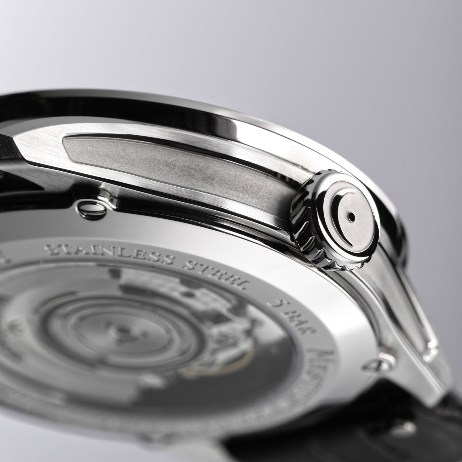 Three references are being launched, regular production models with lacquered black or white dials, and a 25-piece limited edition with a genuine hand-guilloché silver dial, produced on a traditional rose engine by one of the brand’s partners (undisclosed).