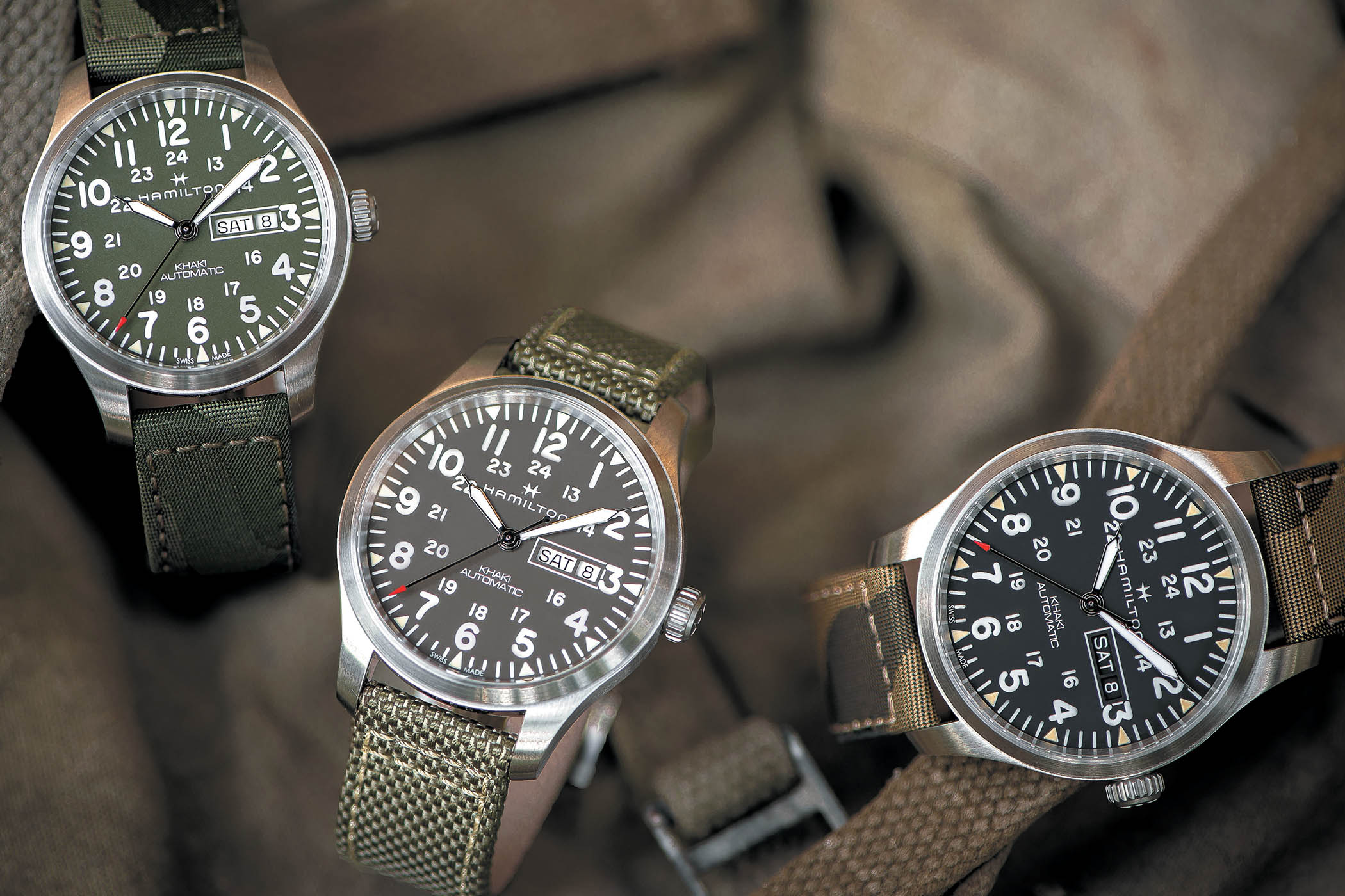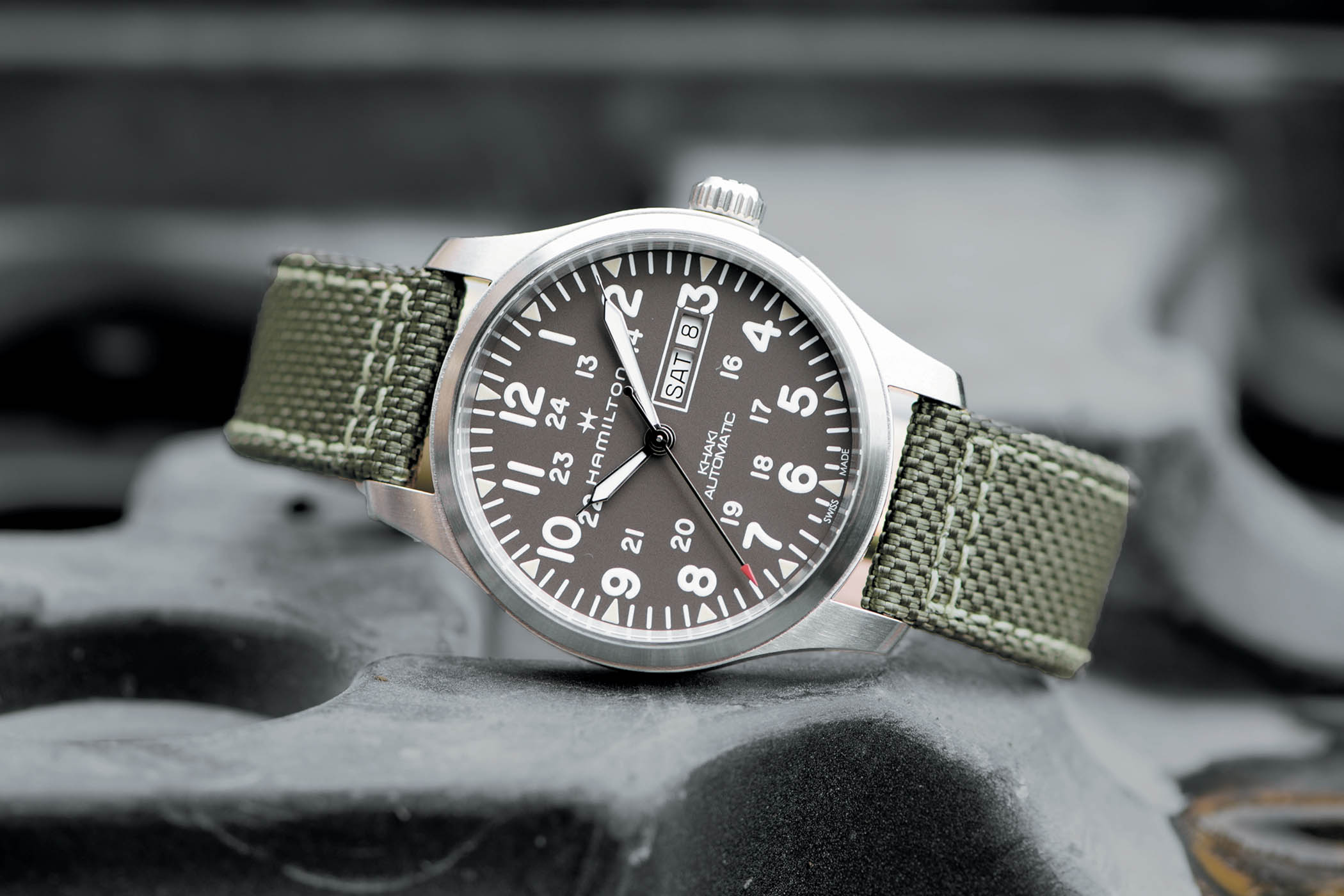 Hamilton was once a great American watch brand, founded in Lancaster, Pennsylvania in 1892. It was bought by Buren Watch Company of Switzerland in 1966 and Hamilton stopped all US operations in 1969. Although it is now part of the Swatch Group, its unique style and character have endured the acquisitions and is among the most recognizable watch brands today. The Khaki Field collection has a clear military aesthetic and is designed for the “adventurous, active wearer.”