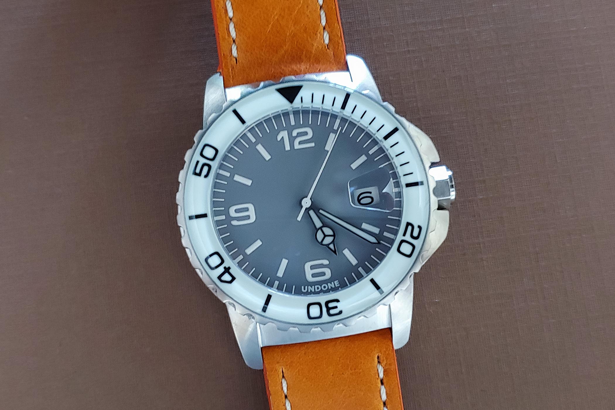 UNDONE is a microbrand based in Hong Kong that specializes in customization. Founded in 2014 by Michael Young, the philosophy of the brand is that luxury is all about products being tailor-made, not simply having a desirable logo. Its Aqua series of dive watches features a level of customization that is almost overwhelming. Case and bezel materials (not just colours) can be chosen, along with over 30 hand combinations, dial options with or without date, and even a black or white date display wheel on the movement. The core features are a 43.5mm diameter case with a sapphire crystal (and optional exhibition caseback), 200m water-resistance and tank-like durability. There is such a comprehensive level of customization that it’s hard to describe the series in more specific terms. In my recent review, I said that the Aqua reminded me of a vintage atmospheric diving suit. Heavy, industrial and just begging to be submerged.