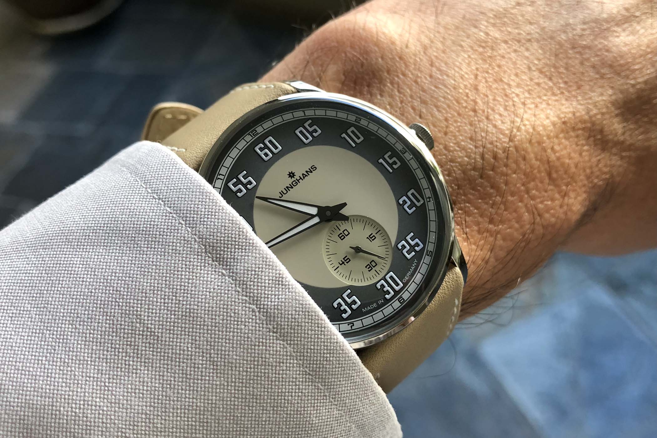 In 2016, Junghans introduced the Meister Handaufzug, a hand-wound watch inspired by a 1932 Maybach DS 8 Zeppelin. It was a super-luxury car at the time and only 25 exist worldwide today. The colours of the dial and strap match the original vehicle’s cream, light grey and anthracite palette, and the watch is a unique standout in Junghans’ Meister line. When I recently reviewed this watch, I concluded that the Junghans design team hit it out of the park.
