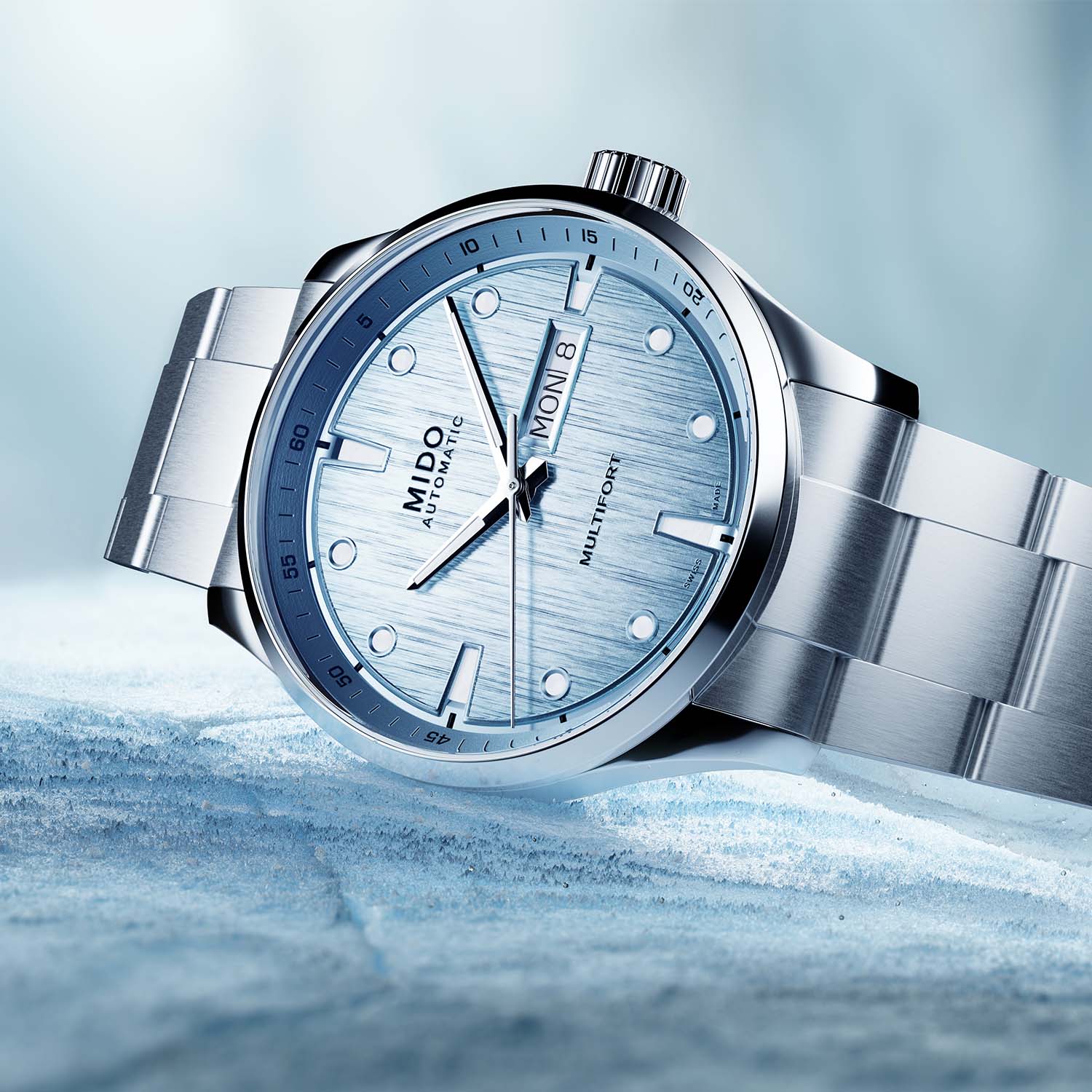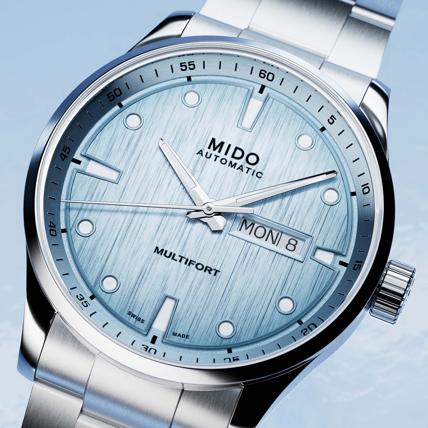 The Stylish Ice Blue Dial of the Mido Multifort M Freeze