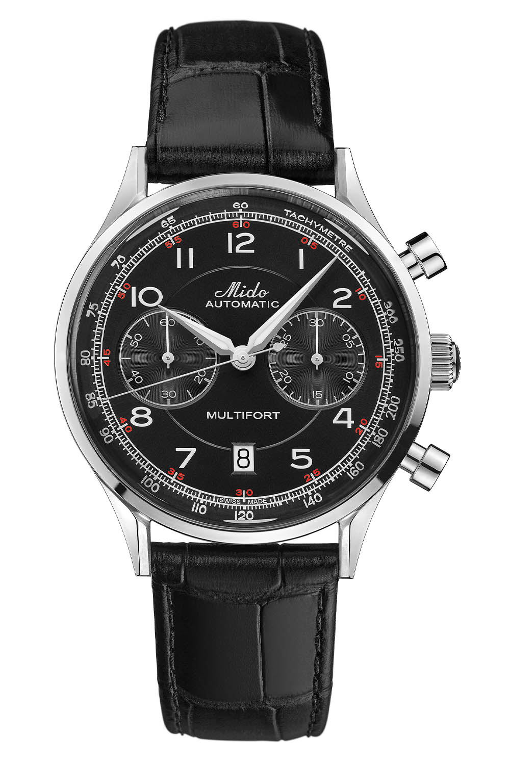 All three editions of the Mido Multifort Patrimony Chronograph are launched in the permanent collection and will soon be available in stores. It will be priced at CHF 1,890 in steel (black dial) and CHF 1,990 in gold PVD steel (blue or silver dial).