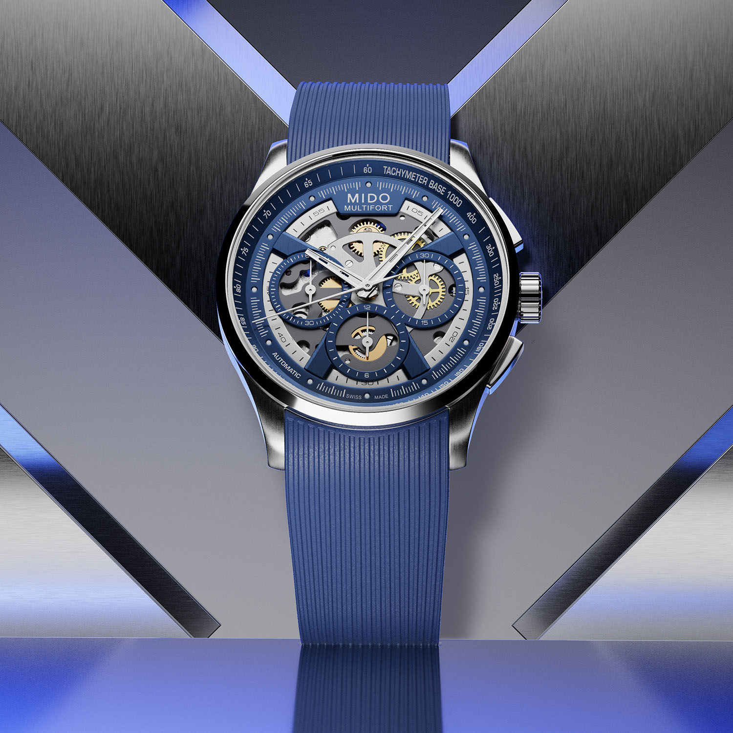 The Multifort collection holds a special place in Mido‘s catalogue, dating back to the 1930s, when it became the brand’s first model to feature an automatic movement. Fast forward to today, and the collection continues to evolve, now welcoming three versions of the Multifort Skeleton Chronograph. Staying true to the Multifort spirit, these new watches are built to perform – automatic, anti-magnetic, shock-resistant, and water-resistant. The openworked dial reveals components of the automatic Caliber 60 ticking beneath, and while skeletonised dials have made appearances in the Multifort family before, this time, the chronograph configuration makes the most of the design.